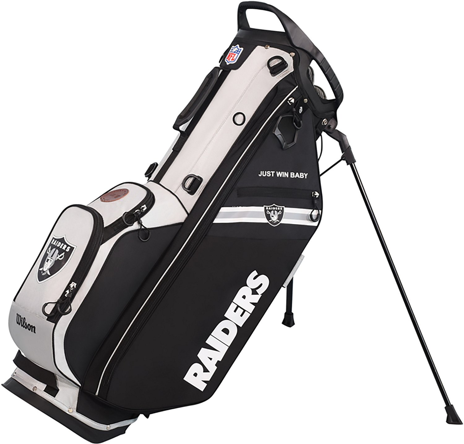 The Wilson Raiders Stand Bag lets you carry your colors with confidence. Tee off with your team and bring your fandom to the fairway. As the official provider of the NFL game ball since 1941, Wilson delivers authentic craftsmanship in a stand bag obsessively engineered for performance. Lightweight yet sturdy, this bag features a magnetic GPS pocket, integrated beverage pocket, ergonomic double shoulder straps, and quick-activation legs for easy carrying and setup. Finished with premium NFL logos, team-approved colors, and a unique leather commemorative pouch, it’s built for golfers who want tour-ready function with unmistakable team pride.