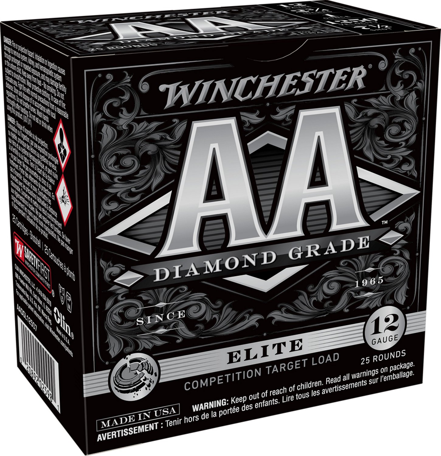 Designed with accuracy and precision in mind, the Winchester AA Diamond Grade Elite 12 Gauge Shotshells feature antimony and copper plating and precision sorted shots that are sealed with a nickel-plated head for consistency. The Legendary AA wads reduce felt recoil. 25 rounds per box. Made in USA.