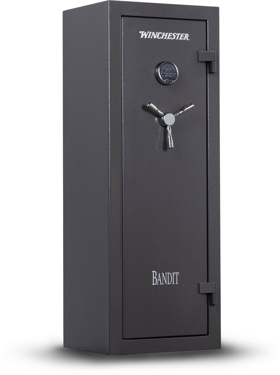 Keep your collection safe and secure with the Winchester Bandit 14 24-Gun Safe. The 14 gauge steel construction affords durability, while fireboard protection in the ceiling, walls and door provides up to 45 minutes of fire protection at 1,400 degrees Fahrenheit. Internally, the safe can hold up to 20 long guns at a time, with 4 handguns able to be stored in the door organizer.