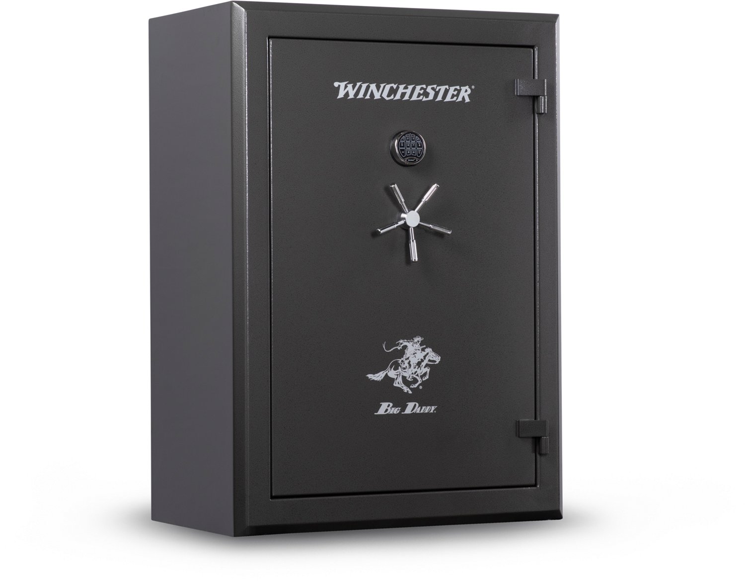 Keep your gun collection safe and secure with the Winchester Big Daddy 65-Gun Safe. The solid 11 gauge steel body affords durability, while solid steel locking bolts provide increased pry resistance. GunStiXX storage lets you store long guns vertically, and a Door Panel Organizer offers convenient access to handguns, accessories, documents and more.