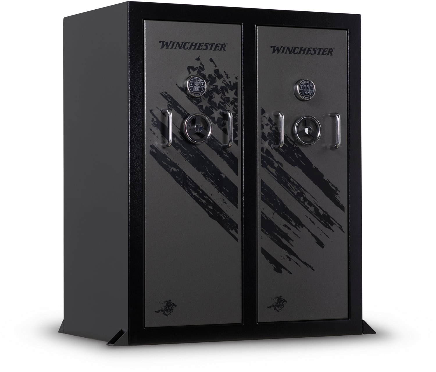 Keep your gun collection safe and secure with the Winchester Defender 40-Gun Double Door Safe. The solid 10 gauge steel body affords durability, while solid steel locking bolts provide increased pry resistance. GunStiXX storage lets you store long guns vertically, and metal shelving with rubberized trays store ammunition, handguns and gear.