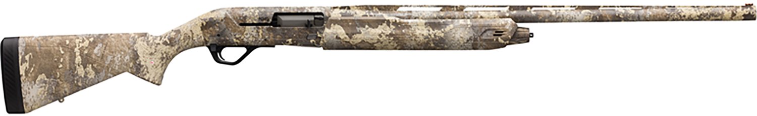 Arm yourself with the Winchester SX4 Waterfowl Hunter 12 Gauge Semi Automatic Shotgun. It is semi automatic with a 4-round capacity. The barrel with a Truetimber Prairie finish is 28-inches long, and its camo stock is equipped with a Truetimber Prairie finish. The aluminum alloy receiver finishes off the design.