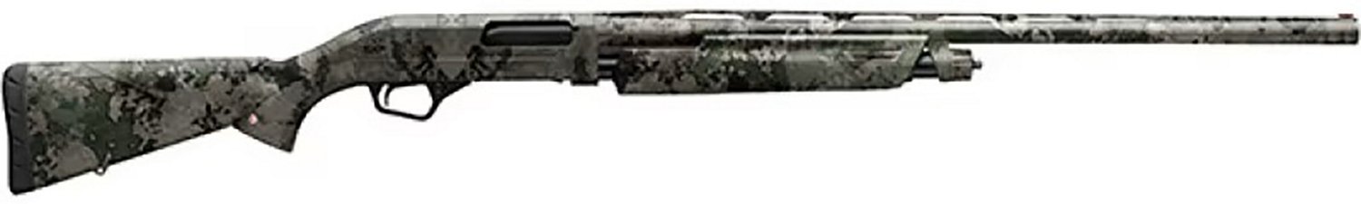 Practice your shooting skills with the Winchester SXP Hunter 20 Gauge Pump Shotgun. This weapon features a pump action with a 5+1 firing capacity, as well as a 26-inch barrel length. This shotgun also includes a Truetimber VSX camo stock and a reversible safety button.