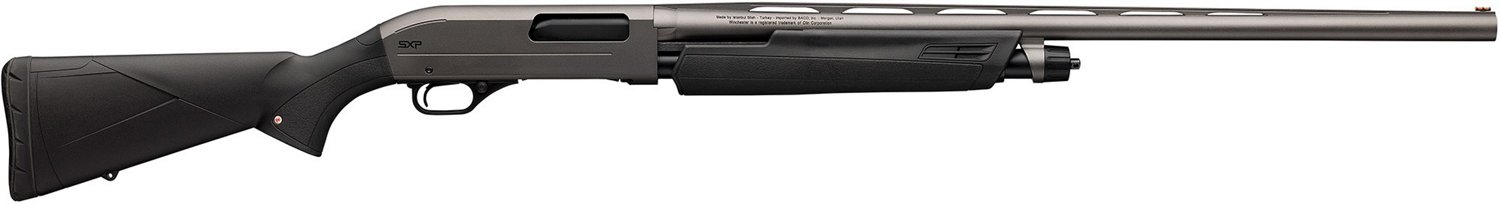 Practice your shooting skills with the Winchester SXP Hybrid 12 Gauge Pump Shotgun. This weapon features a pump action with a 4+1 firing capacity, as well as a 28-inch barrel length. This shotgun also includes a synthetic stock and fixed sights with TRU GLO fiber optic front sights.