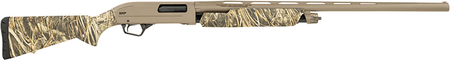 Features and Benefits Pump action with a 4-round capacity Back-bored vent rib steel barrel Aluminum alloy receiver Synthetic stock Drop-out trigger TruGlo fiber optic front sight Invector-Plus flush choke Specifications Action: Pump Action Metal finish: Flat dark earth permacote Activity: Recreational Shooting Length of pull (in.): 13.75 Barrel length (in.): 28 in Series: Super X Pump Handedness: Right Handed Firearm Action: Pump Action Firearm Capacity: 4+1 Product Type: Shotguns Cylinder capacity: 1 Style: Pump Action Shotguns Finish: Camo Chamber length (in.): 3.5 Stock: Synthetic Caliber: 12 Gauge What's in the Box Winchester SXP Hybrid Hunter 12 Gauge Pump Action Shotgun Important Product and Safety Information We recommend the use of protective eyewear whenever using or near the use of this item. Firearms purchased online are shipped to your local Academy Sports + Outdoors as selected in the checkout process. Please note that all firearm purchases require valid US government issued ID and related firearm paperwork. Shipping Restriction: Currently we are not able to ship this product to the following state(s). Shipping is restricted.