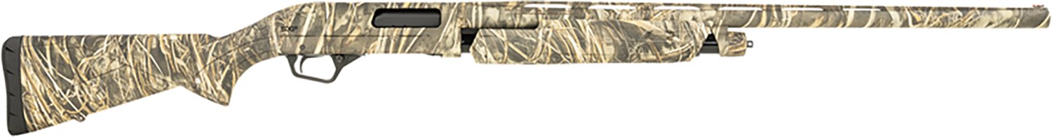 The Winchester SXP Waterfowl Hunt 12 Gauge Pump Action Shotgun is pump action and has a 4-round capacity. It's built with a back-bored vent rib barrel, synthetic stock and TruGlo fiber optic front sight. An Invector-Plus flush choke completes the design.