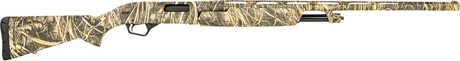 Arm yourself with the Winchester SXP Waterfowl Hunter 20 Gauge Pump Action Shotgun. It is pump action with a 5-round capacity. The barrel with a Realtree Max-7 finish is 26-inches long, and its camo stock is equipped with a Realtree Max-7 finish. The aluminum alloy receiver finishes off the design.
