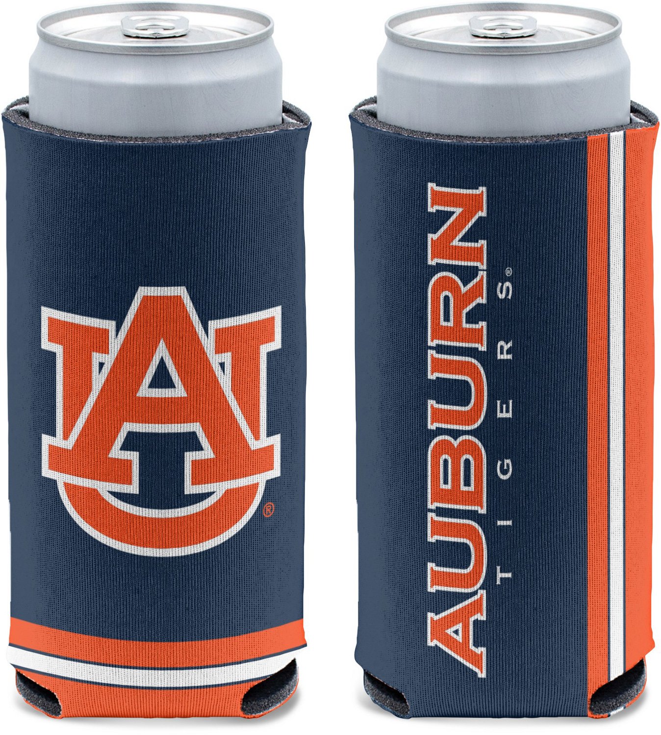 Enjoy your favorite drink and showcase your team pride on the go with the WinCraft Auburn University Slim Can Cooler. The construction helps keep your canned beverages cold and enjoyable, while the Tigers-themed design proudly puts your fandom on display.