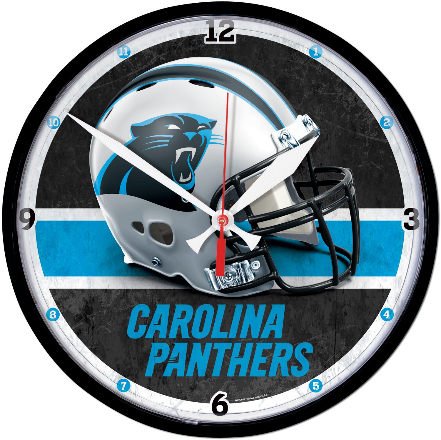 Keep your eye on the time with help from your favorite team when you use the WinCraft Carolina Panthers Round Wall Clock. The analog face with vibrant numbers offers easy visibility and the high quality quartz movement with a sweep second hand provides accurate time readings. The molded plastic construction delivers durability, while the Panthers-themed design proudly puts your fandom on display. 12-3/4-inch diameter. Made in USA.