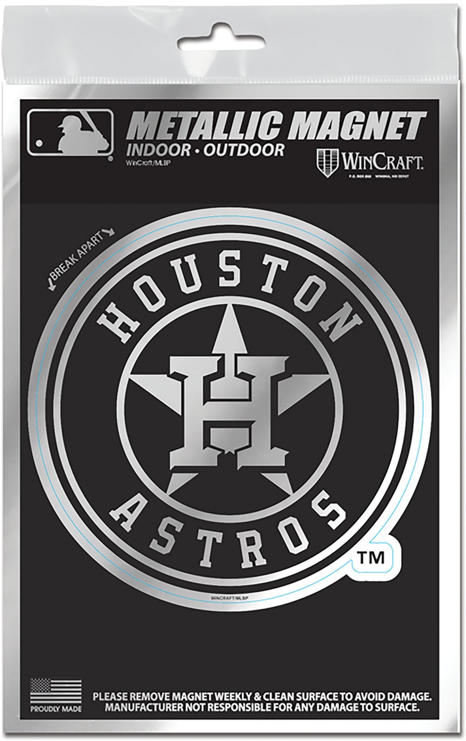 Make sure everyone knows who you're rooting for on game day with the WinCraft Houston Astros 3 in x 5 in Metallic Magnet. The die-cut metallic construction is built to last, while the team design puts your fan spirit on display for all to see. Made in USA.