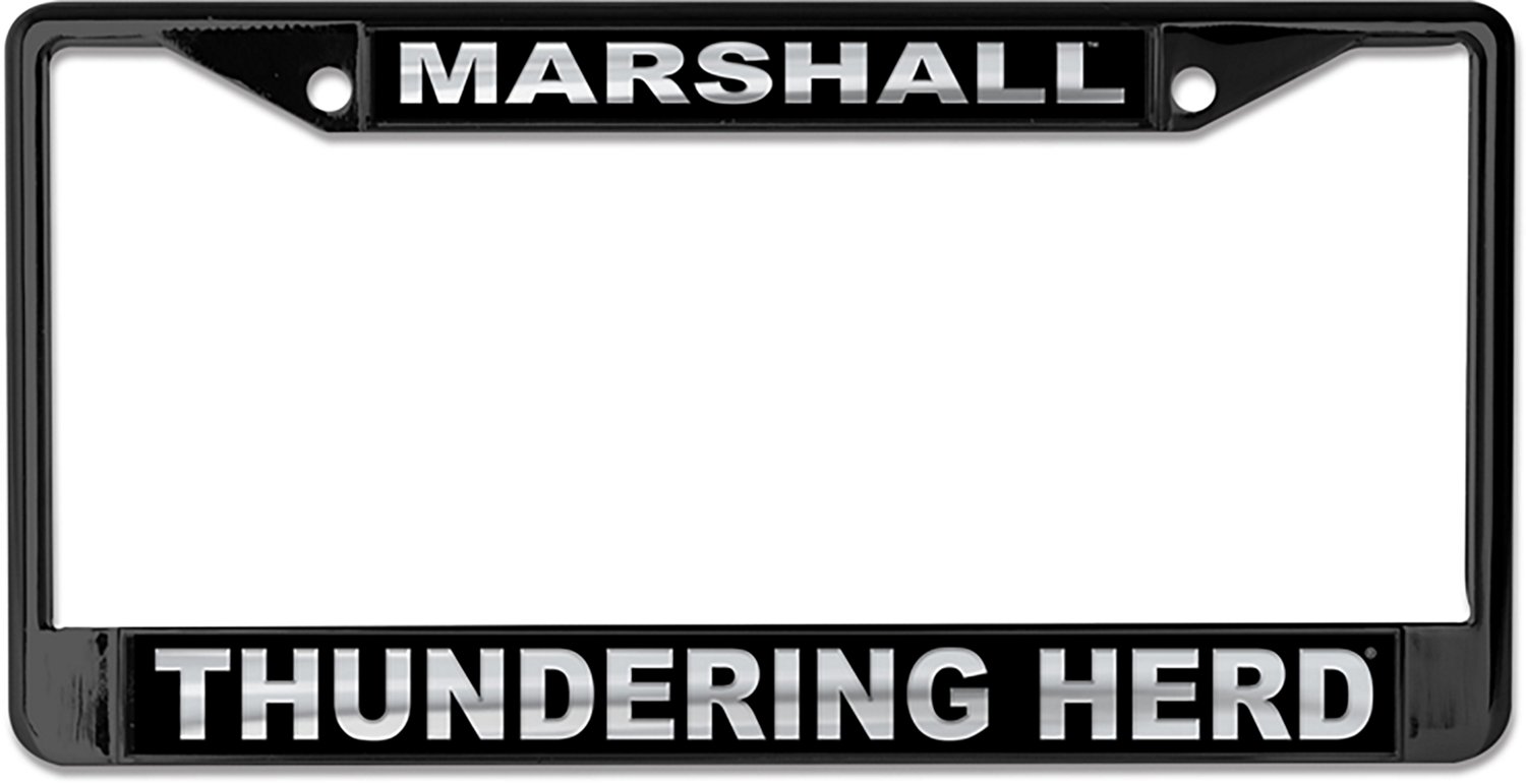 Rep the Thundering Herd with the WinCraft Marshall University Blackout License Plate Frame. This license plate frame has a chrome frame with acrylic inserts and has 4 holes for easy mounting. The Marshall team design shows your team spirit.