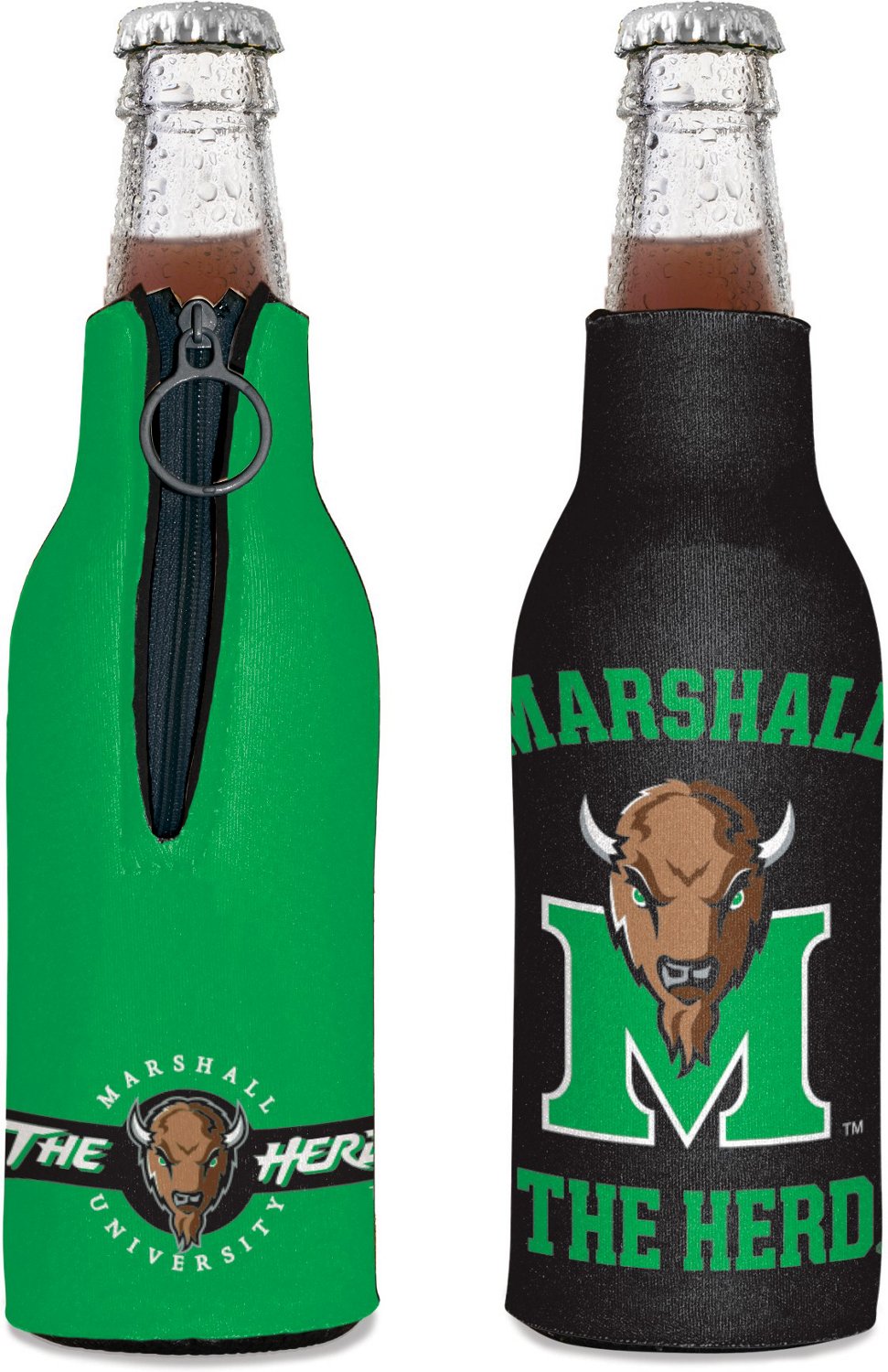 Crack open a cold one on game day with the WinCraft Marshall University Primary Logo Bottle Cooler. The high-density foam wrap keeps drinks cold and eliminate condensation, and the zipper pull includes an integrated bottle opener. A team graphic shows everyone who you're rooting for.