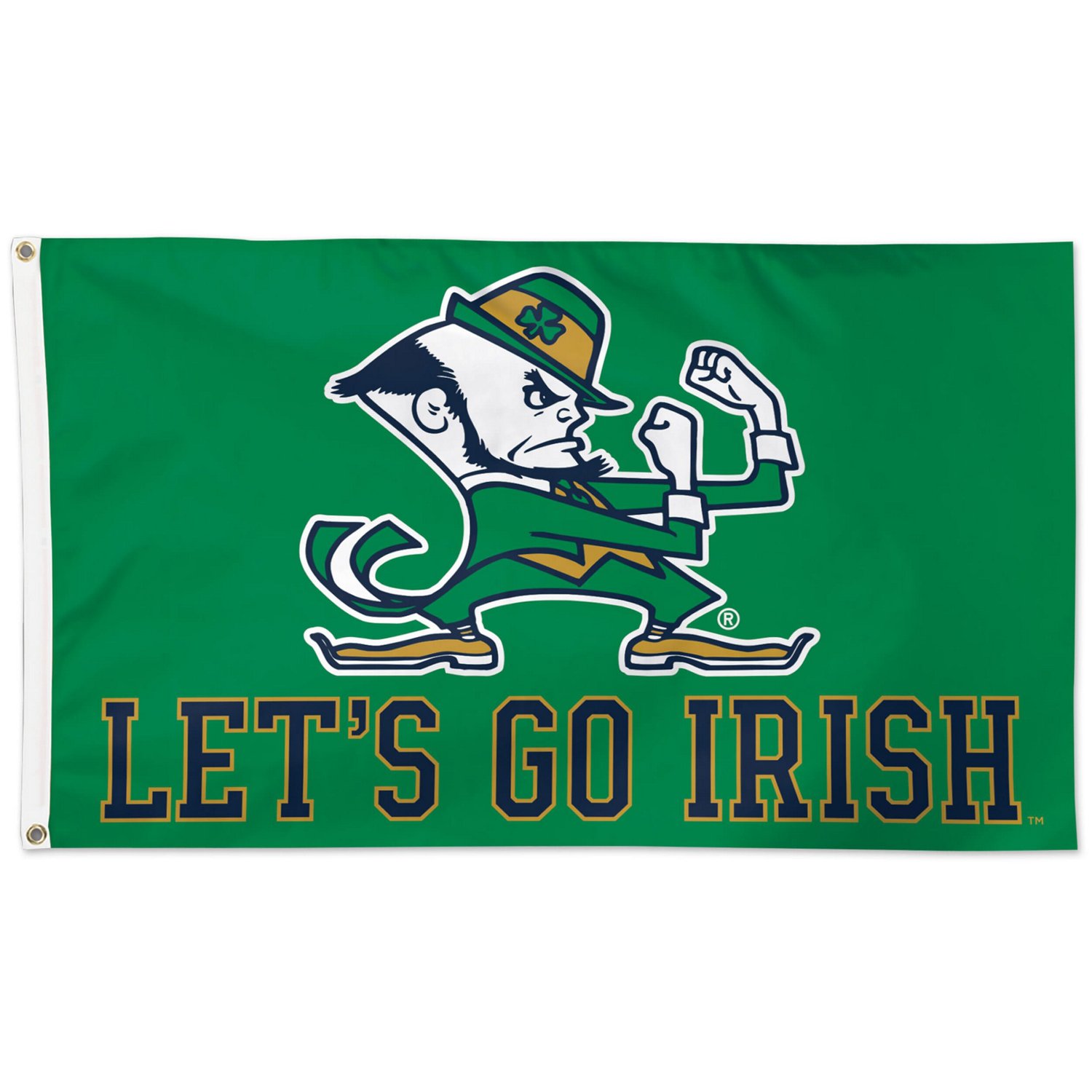 Let your Notre Dame Fighting Irish team spirit soar with this striking 3' x 5' Mascot one-sided flag This flag from WinCraft features crisp graphics and a classic design that's ready to hang Inside or outside this Notre Dame Fighting Irish flag will make a big statement about your fandom