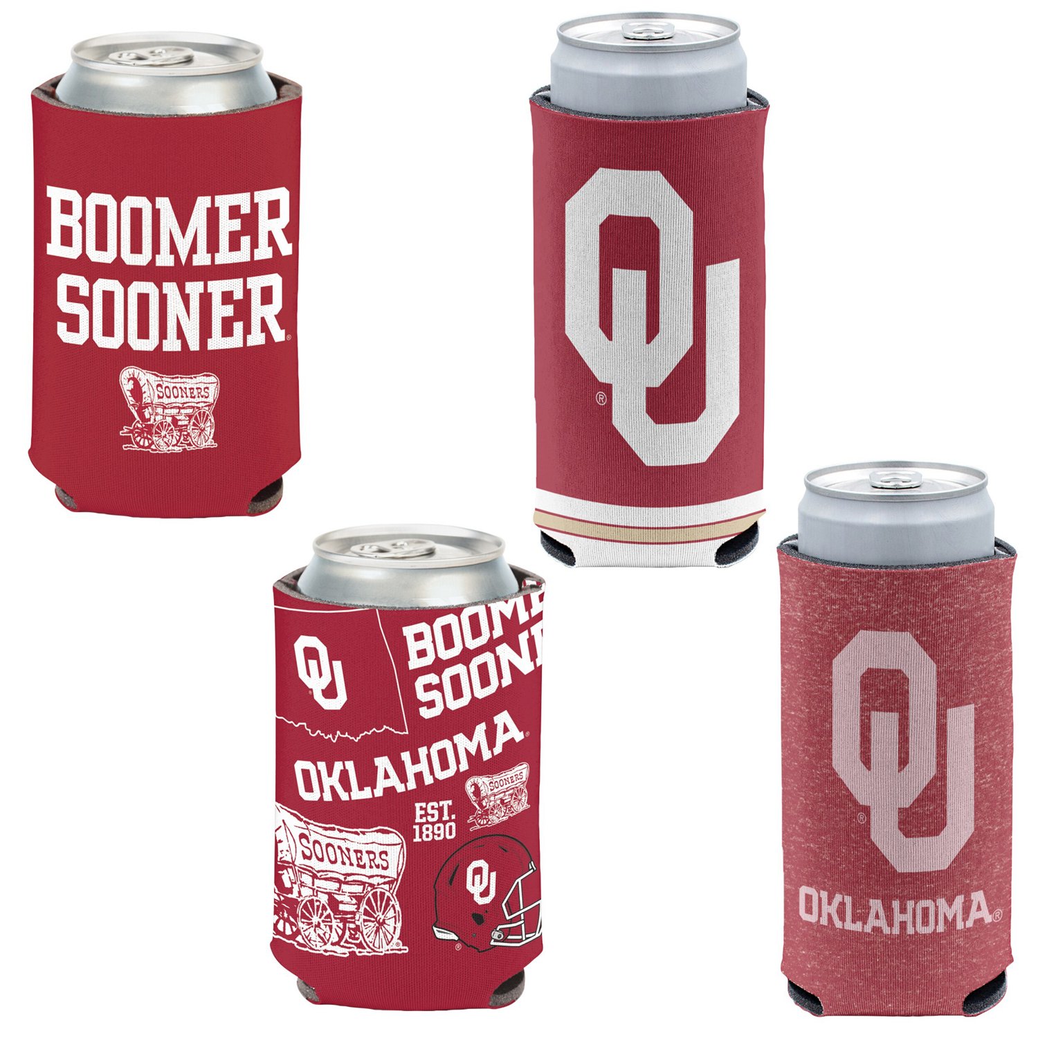 WinCraft Oklahoma Sooners 4-Pack 12oz Can Slim Can Cooler Set
