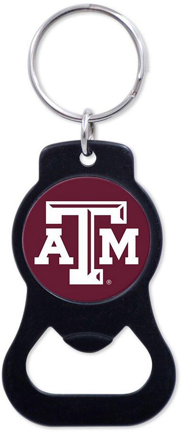Crack open a refreshing game day beverage with a WinCraft Texas A&M University Black Bottle Opener. This handy tool fastens to a key chain, bag or backpack, ensuring that you always have it on hand, and is made of durable metal. A printed team logo shows everyone who you're rooting for.