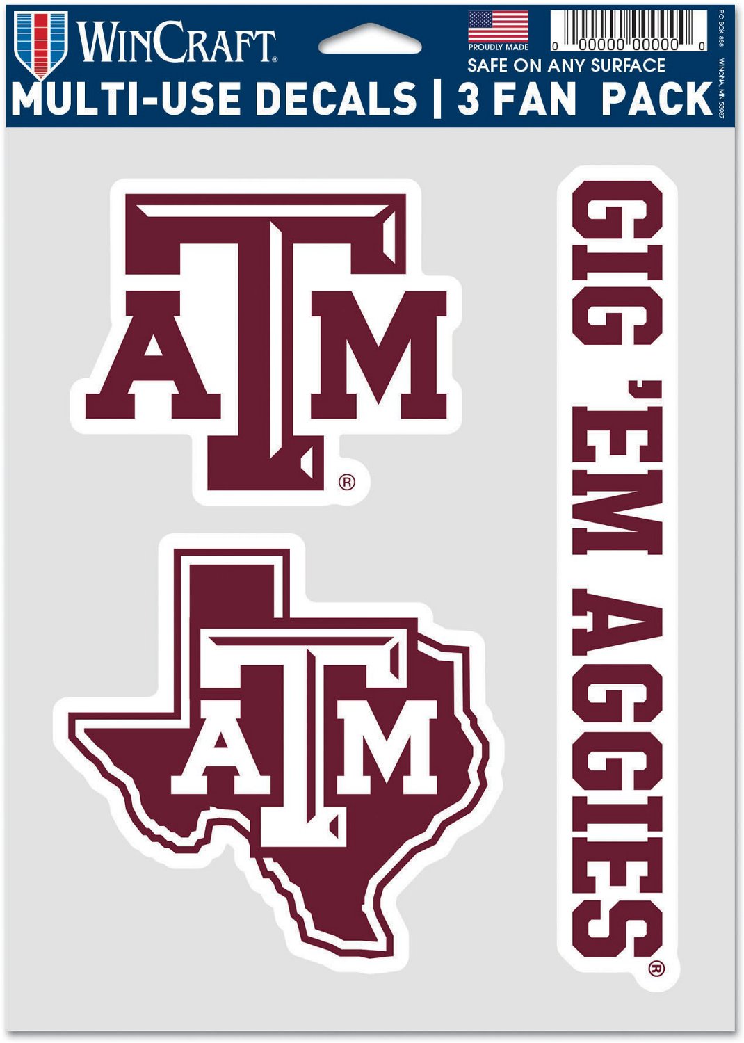 Display your support for the Aggies with the WinCraft Texas A&M University Fan Decals 3-Pack. The multi-use design allows for placement across most surfaces, while the fan designs add a fun touch to your locker or laptop.