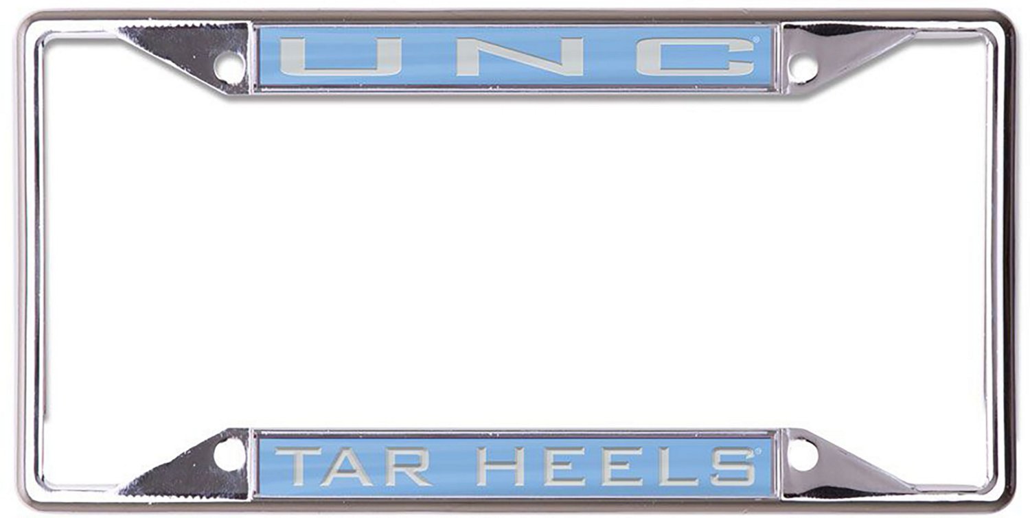 Show your fandom to everybody on the road with the WinCraft University of North Carolina Inlaid Mirror License Plate Frame. The metallic chrome finish creates an eye-catching look, while acrylic inserts display your favorite team's logo.