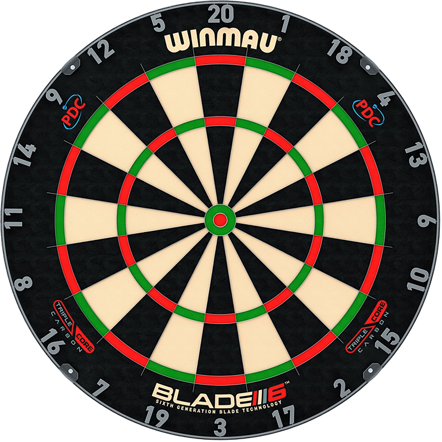 Get a new high score with the Winmau Blade 6 Triple Core Professional PDC Dartboard. Its Triple Core Carbon features an all-new patented system with a seamless playing surface. The high compression layer with carbon fiber reinforced sisal provides optimal fiber density, unrivalled dart retention, and maximum scoring, and its Density Control™ wire offers optimum fiber density and improved dart retention in the double, treble and bullseye zones, for scoring power. The all-new graphics and the world’s first laser cut anti-glare number ring creates the ultimate playing experience.