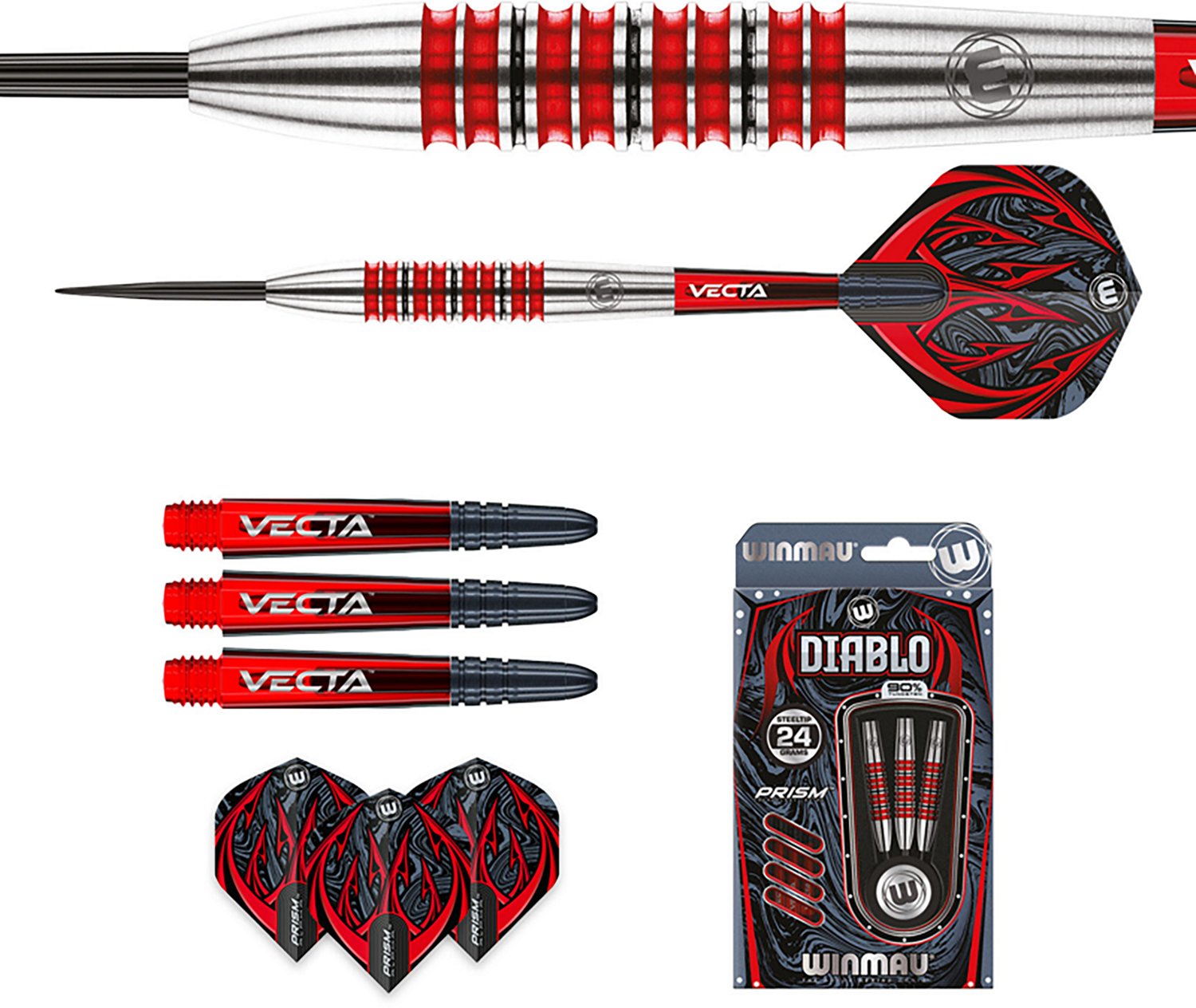 Play like a pro with the Winmau Diablo Steel Tip Pro Tungsten 24 g Darts 3-Pack. The torpedo barrels boast a centered weight distribution for consistent shots, and the grips are made with center square grooves and finished with Vetalic Performance coating for comfortable control.