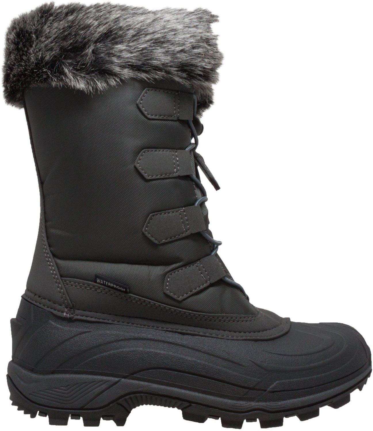 Take on chilly days in comfort whenever you step into the WinterTec Women's Nylon Winter Boots. The quilted woven synthetic textile uppers supply a soft feel and a sleek appearance. The herringbone rubber outsoles offer traction. The waterproof rubber shells supply durability and protection, while the faux fur trim collars create a cozy, snug fit.
