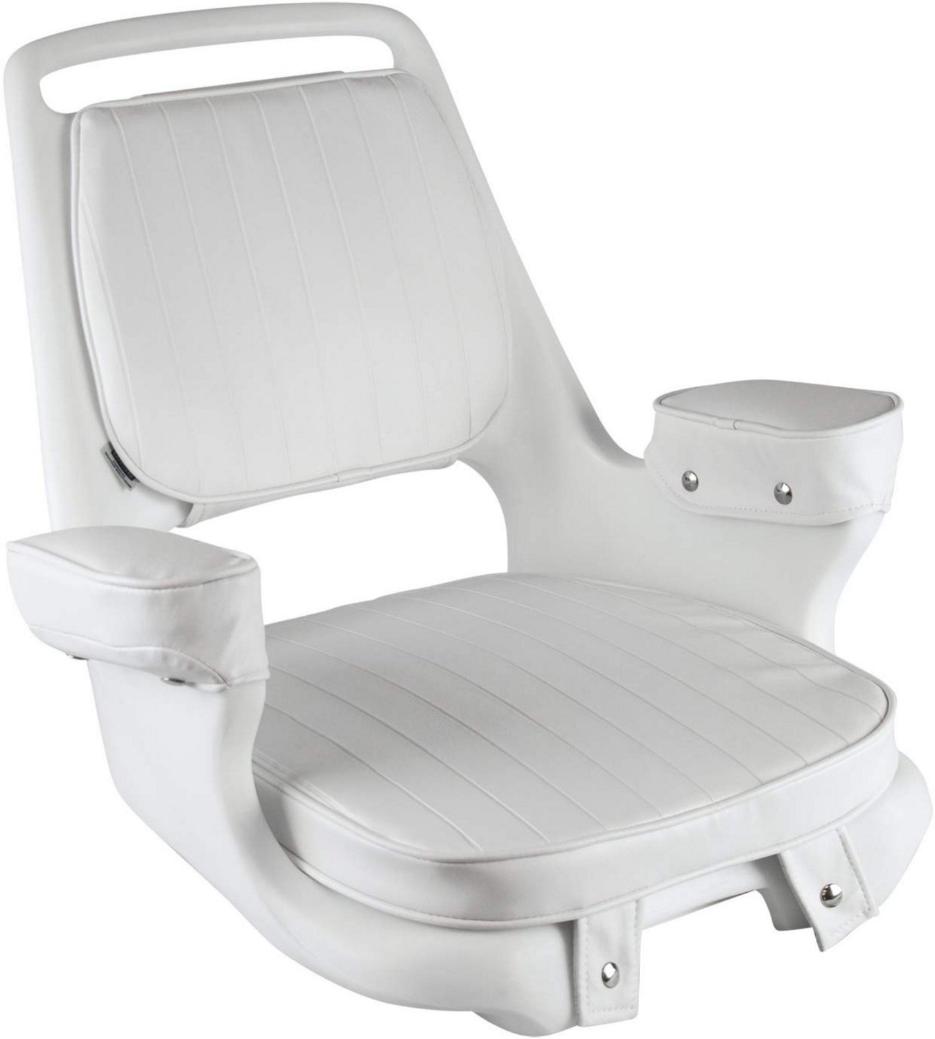 Mount the Wise Captain's Chair with Cushion Set to your pedestal system, and enjoy the open water in comfort. You'll feel cushioned and supported with the high-compression foam padding and armrests and the thick-wall, plastic frame. Made with UV- and mildew-resistant upholstery, the cushions snap on and off for easy cleaning, and the pre-attached plastic plate with T-nut inserts allows easy mounting.