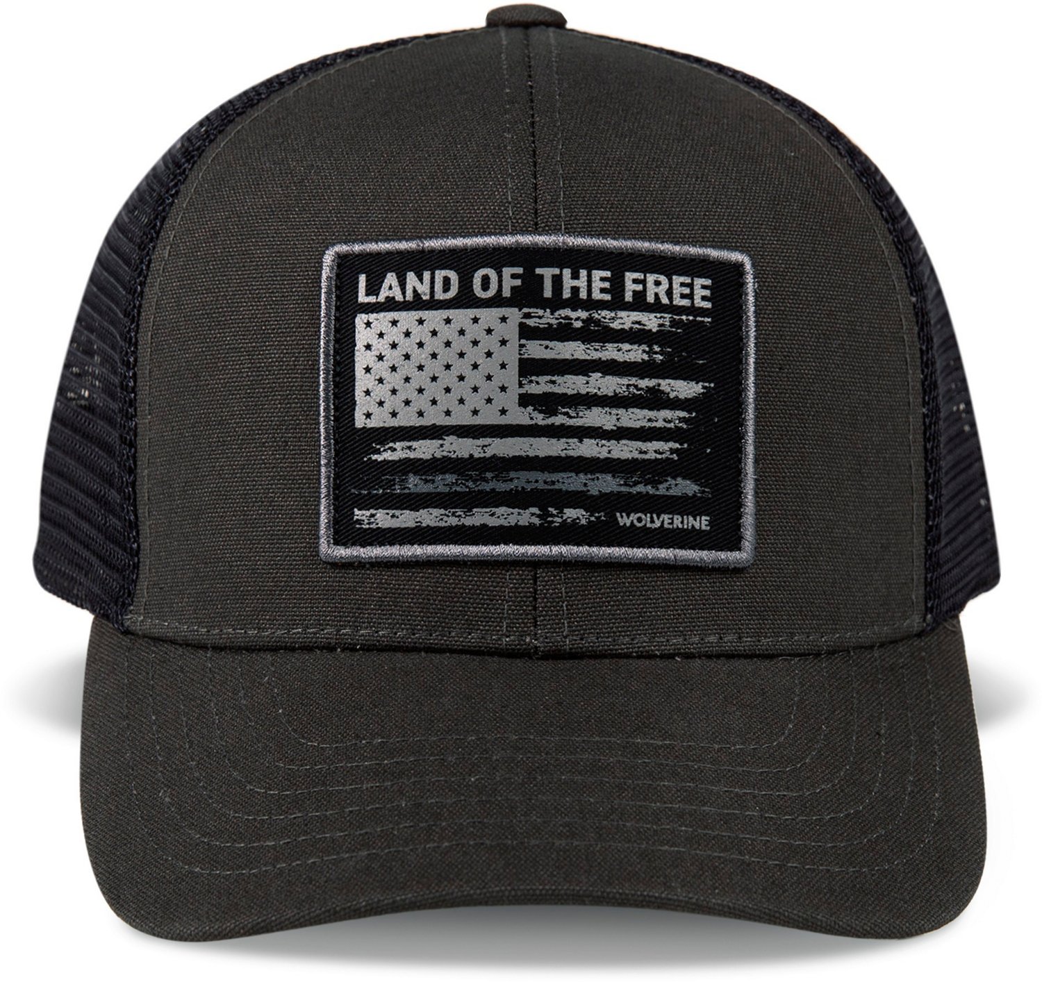 Show off your country's love with the Wolverine Adults' Land of the Free Heavy Duty Canvas Adjustable Trucker Cap. The high-performance cotton construction offers a soft feel, and the moisture-wicking sweatband design helps you stay dry. The mesh back panels offer a ventilated feel, and the Land of the Free logo patch adds a sleek look.