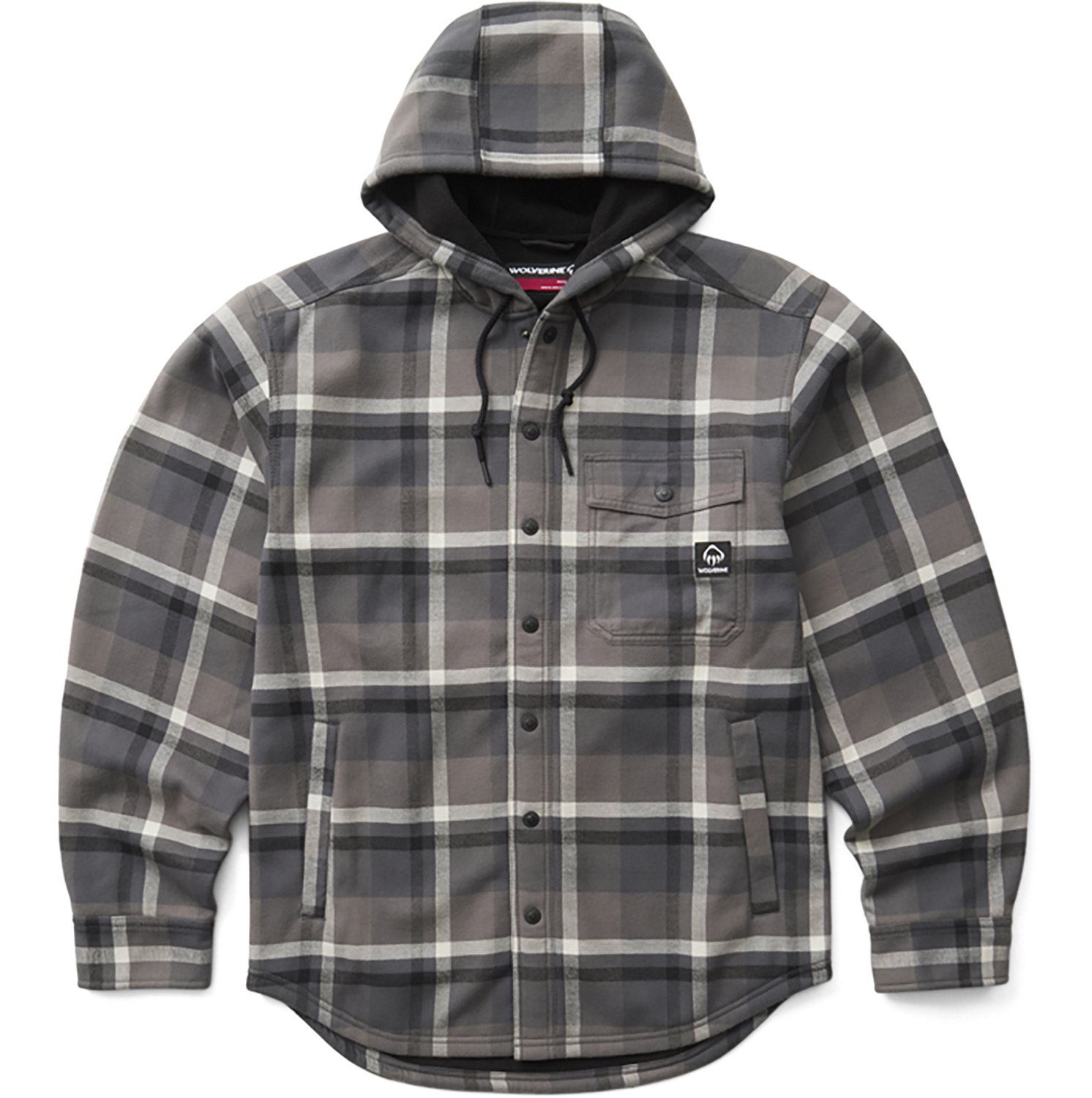 Look your best when you wear the Wolverine Men's Bucksaw II Shirt Jac. It is made of 100% cotton flannel. The synthetic insulation helps retain heat, and its snap button closure offers a secure fit. The Wolverine claw graphic finishes off the design.