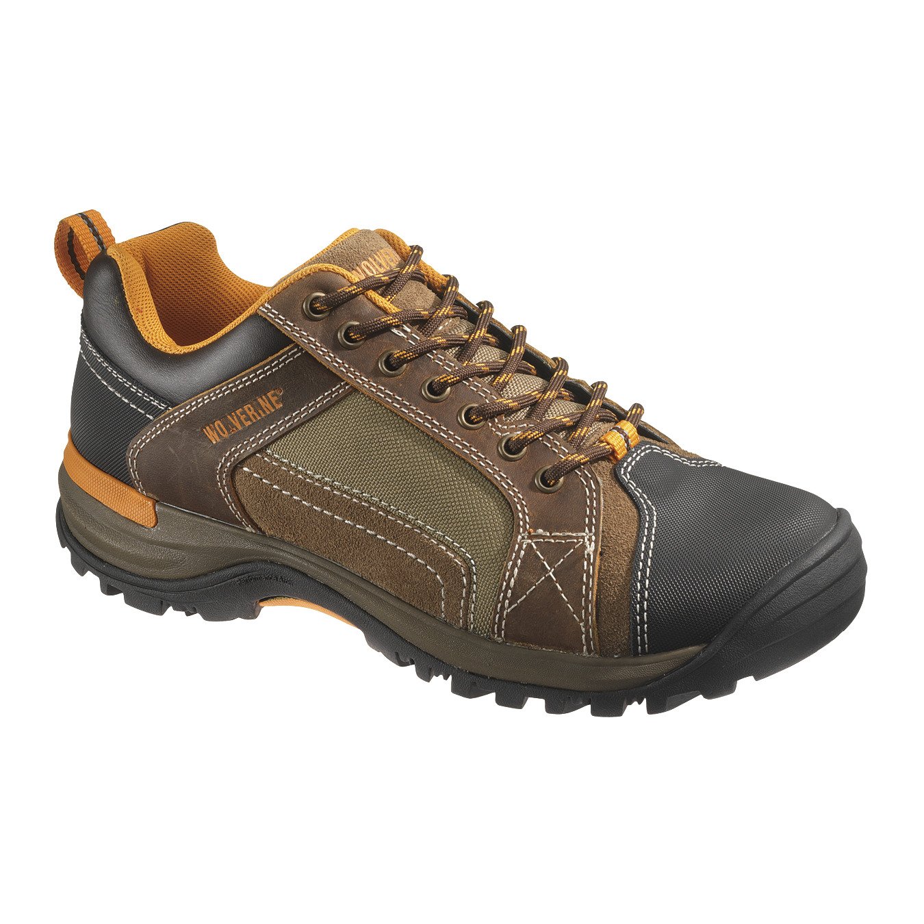 The Wolverine Men's Chisel Steel-Toe Low-Cut Work Shoes feature full-grain leather and nylon uppers for durability and rubber lug outsoles that deliver traction. Compression-molded EVA midsoles and Eco-Right® recycled single-density polyurethane footbeds offer cushioned comfort, while wave mesh linings provide breathability and steel toes help protect your feet. Lace closures.