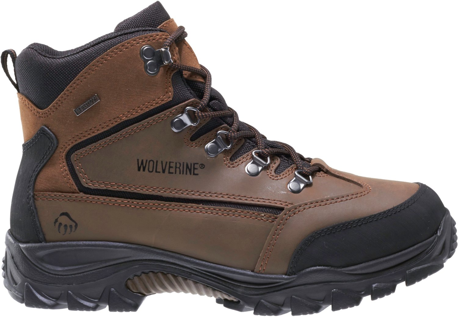 Climb every mountain in Wolverine Men's Spencer Waterproof Boots. These hiking boots are built with nubuck and nylon uppers that are waterproof, and a mesh lining to help keep you dry. The moldable footbed offers cushioning, and the lightweight, nylon shank is supportive. Rubber cup outsoles stabilize and grip with confidence.