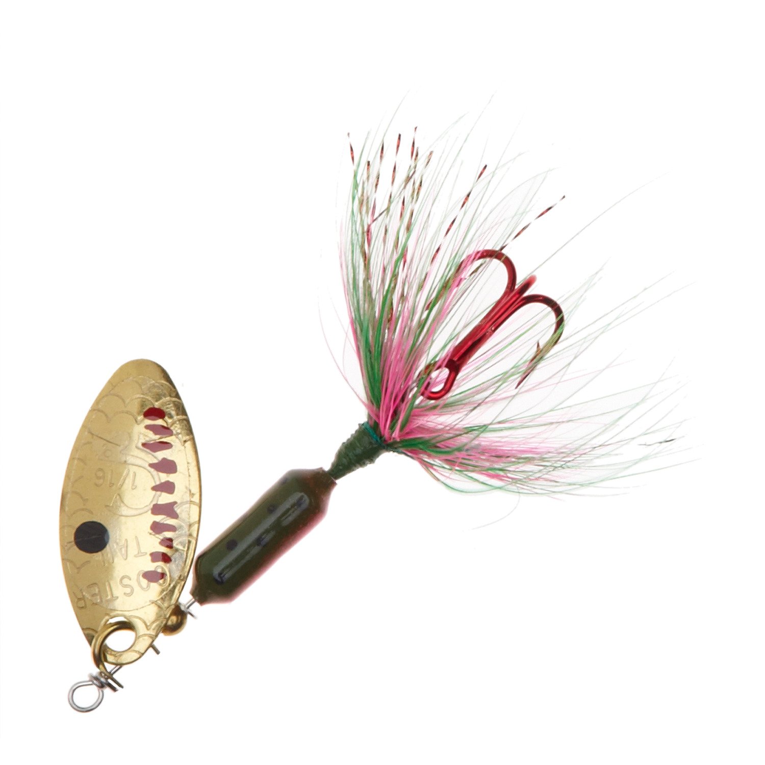 Catch trophy fish with the Worden's Rooster Tail 1/8 oz In-Line Spinner. This hardbait features a premium, dressed, red treble hook to attract bites and secure your catch. For use in freshwater. 1/8 oz. Hook size: 6.