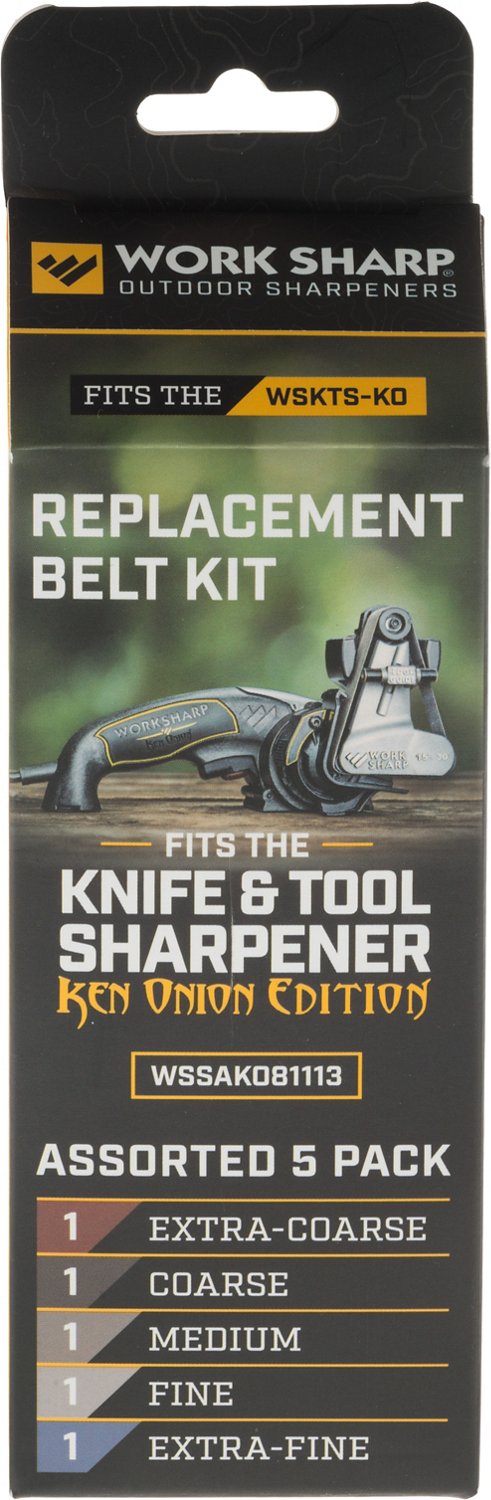 Sharpen tools and knives with this Work Sharp Ken Onion Edition Replacement Abrasive Belt Kit. Featuring belts of extra-coarse, coarse, medium, fine and extra-fine grits, the kit makes it easy to accomplish your tasks.
