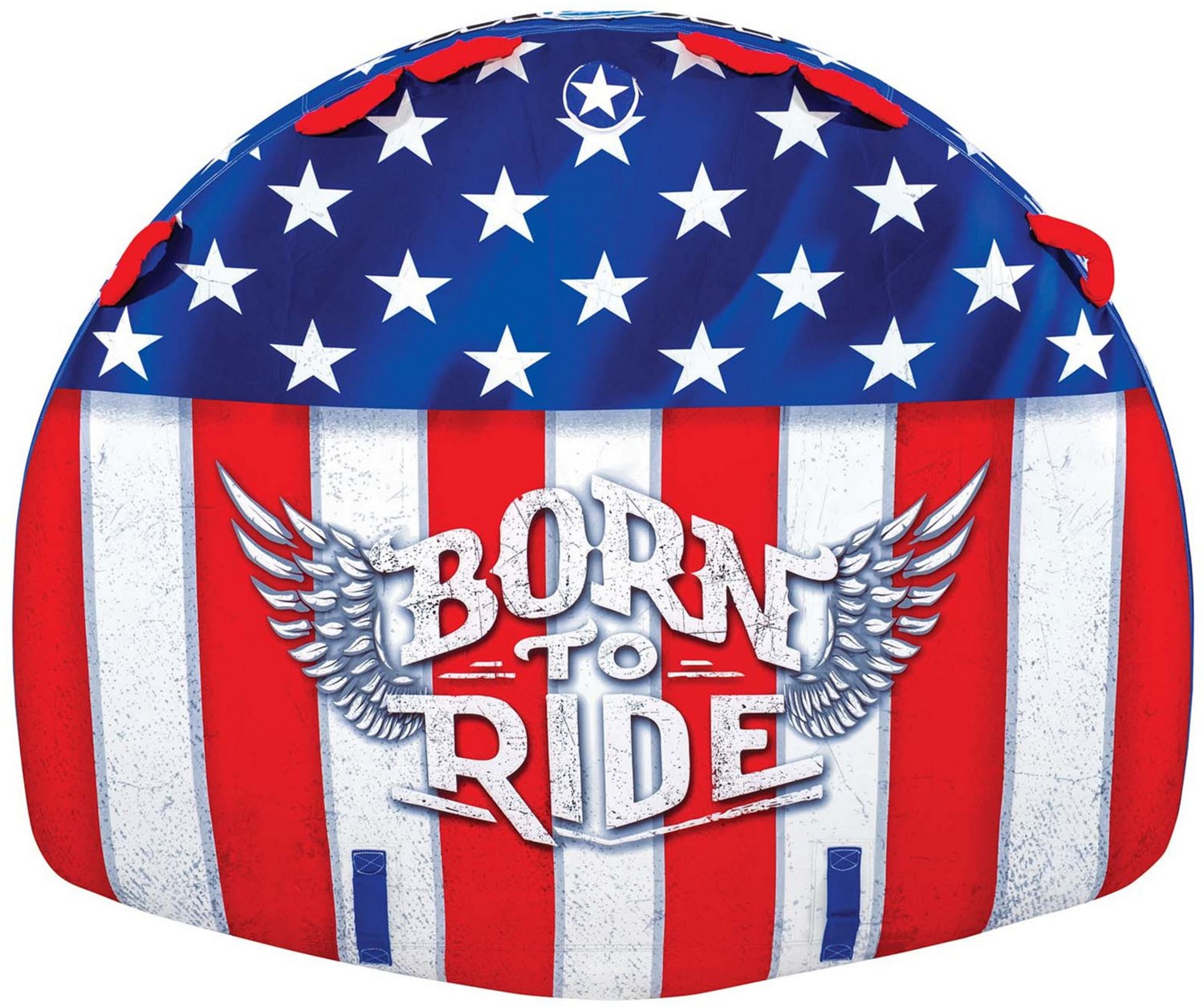 Stay comfortable as you glide across the water with the WOW Watersports Born to Ride 3 Person Soft Top Deck Tube Towable. The molded EZ tow connector provides a secure connection to the boat, while the HI-VIS patriotic design creates an eye-catching appearance. The soft top offers a comfortable texture during the ride.