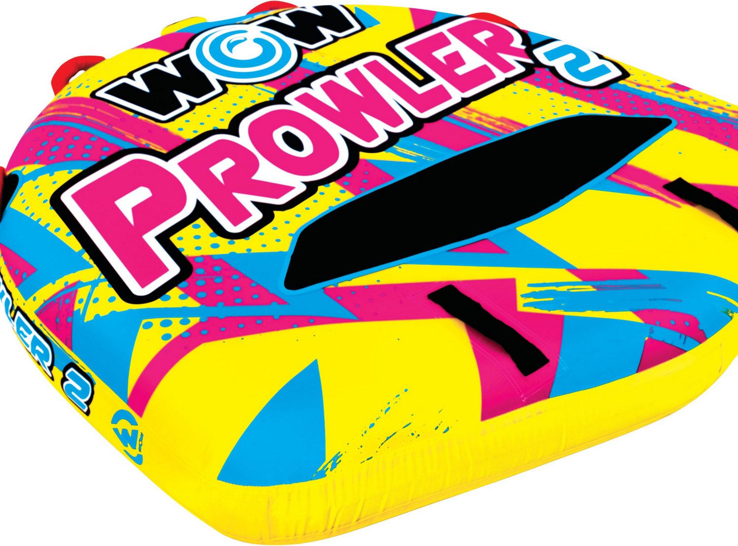 Go for a ride with the WOW Watersports Prowler 2-Person Starter Kit. The PVC construction affords durability, while the 12 volt pump delivers fast inflation.