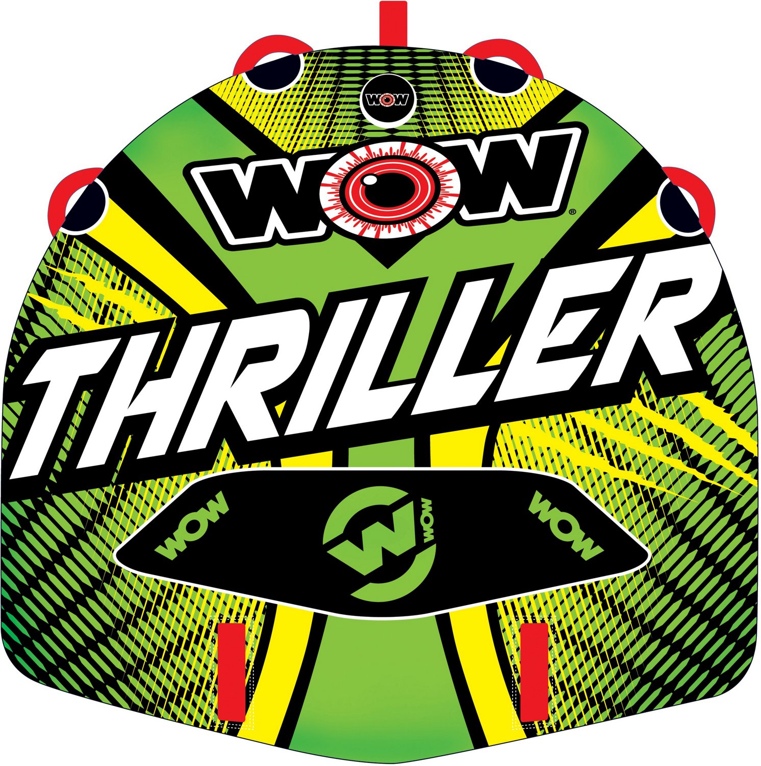 You'll love the wild wake action delivered by this WOW Watersports Thriller 1-Person Inflatable Towable Tube, which features a tapered design with a higher front. The TUFF SHELL nylon cover stands up to repeated use, and the PVC bladder provides reliable air retention.