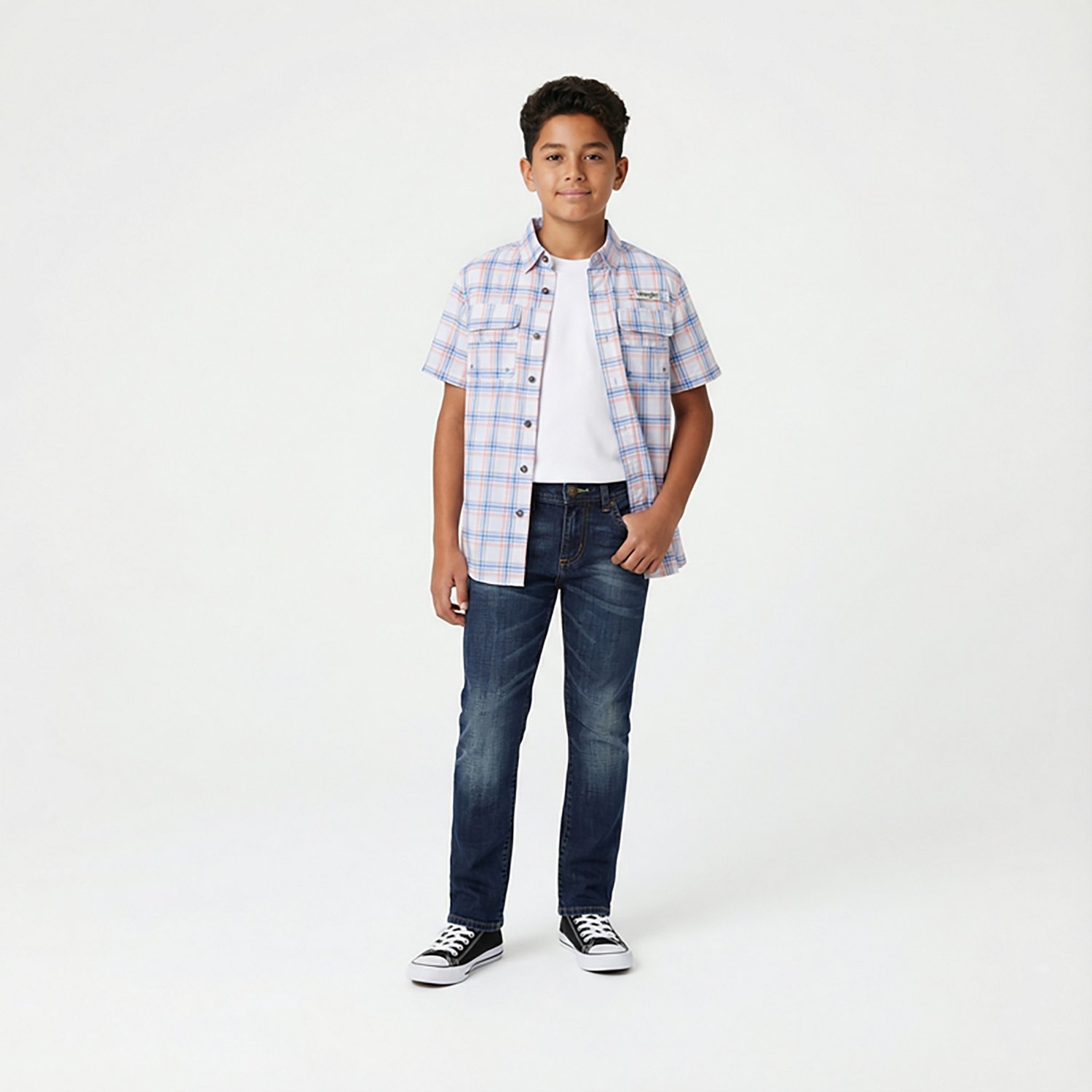 Step out feeling confident in the Wrangler Boys' Retro Slim Straight Jeans. The 99% cotton and 1% elastane construction offers a soft feel all day, and the leather patch adds a fashionable touch. The 2 back pockets allow you to conceal small items, and the zip-fly with button closure provides a snug fit.