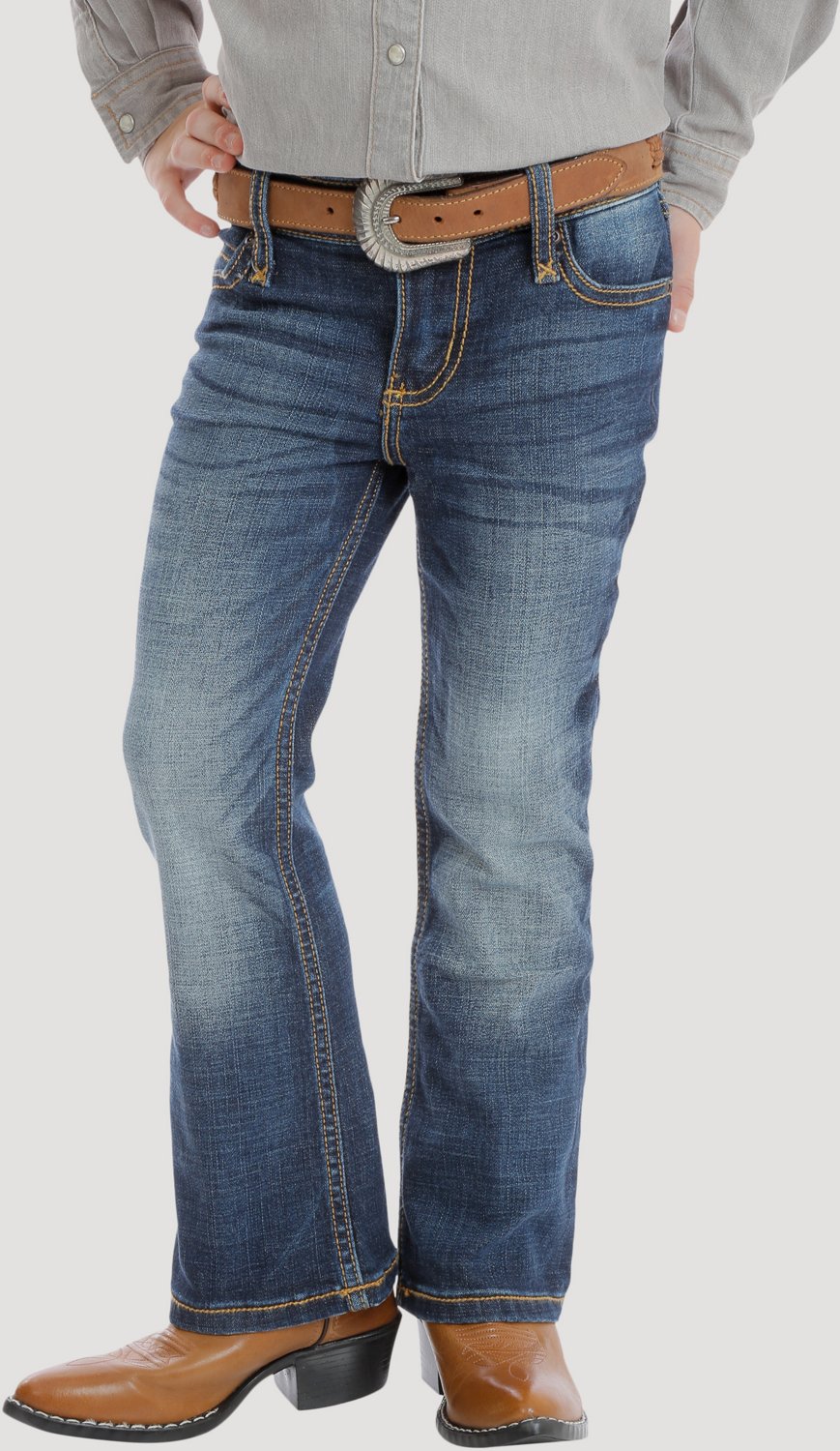 Step out feeling confident in the Wrangler Girls' Bootcut Jeans. The 99% cotton and 1% spandex stretch denim construction offers a soft and stretchy feel, and the zip-fly with button closure provides a snug fit. The 2 back pockets allow you to conceal small items, and the bootcut fit helps to complete the look.