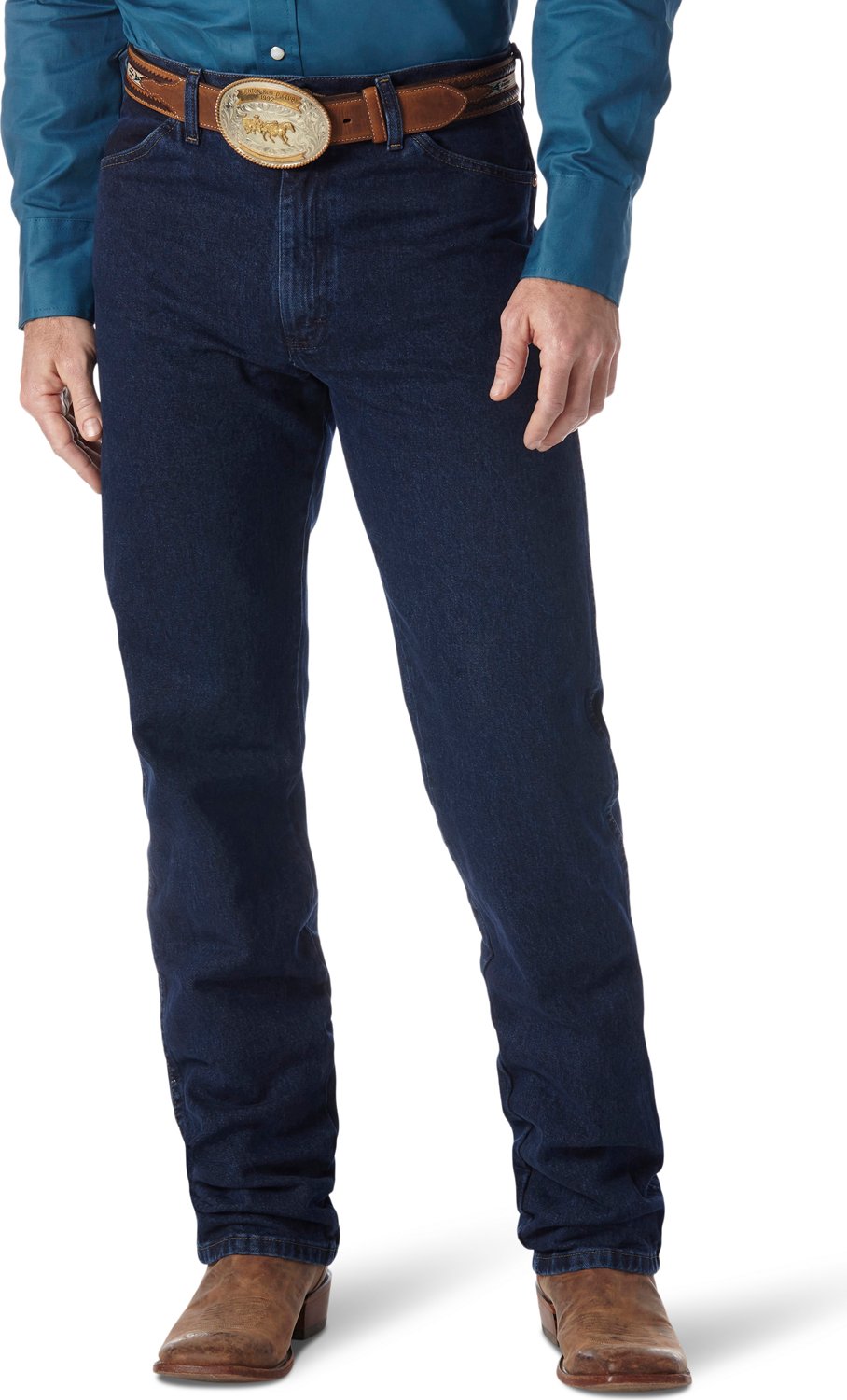 The Wrangler® Men's Cowboy Cut® Original Fit Jean is constructed from heavyweight cotton broken twill denim for durability. This 5-pocket jean features an original fit that offers comfort during ranching, rodeos and everyday work activities. Official ProRodeo competition jean.