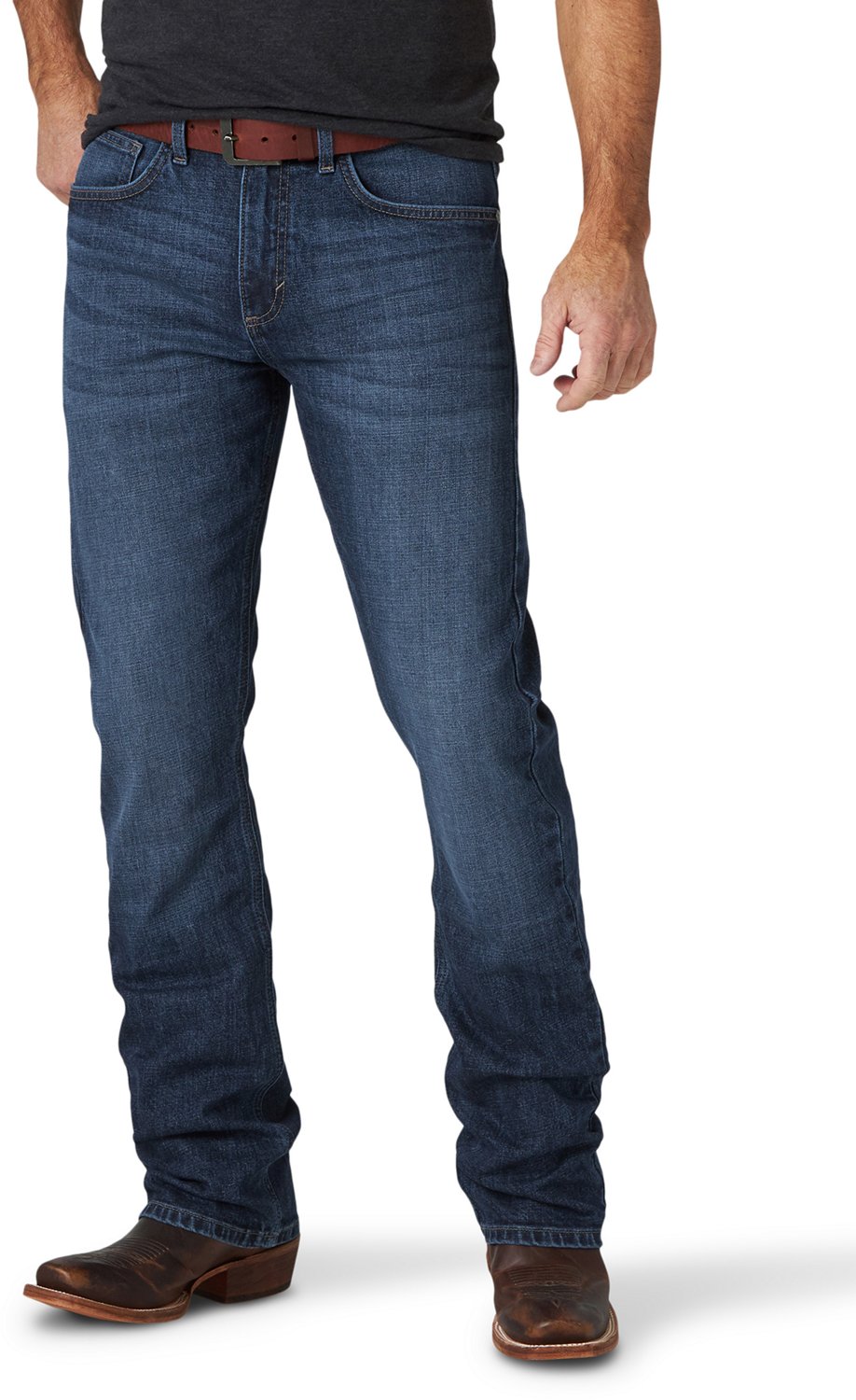 Step out feeling confident in the Wrangler Men's 20X NO. 42 Vintage Bootcut Jeans. The 100% cotton denim construction offers a soft feel all day, and the zip-fly with button closure provides a snug fit. The pockets allow you to conceal small items, and the Wrangler® stitching and embroidery details add a fashionable touch.