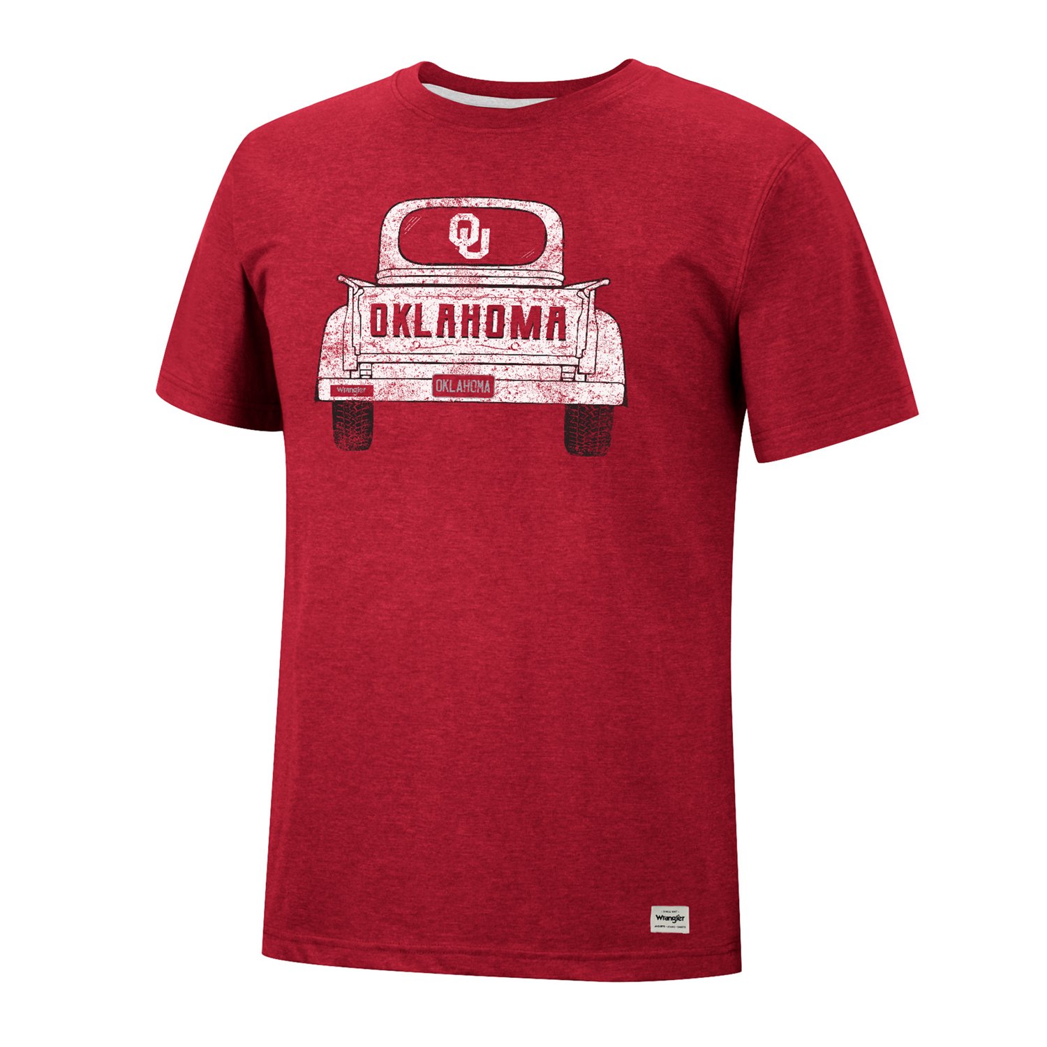 Show off your favorite team in the Wrangler Men's Oklahoma Pick Up Short Sleeve Tee featuring a 52% cotton and 48% polyester dual blend with the team name and logo prominently displayed. The crew neck and short sleeves deliver added comfort and style.