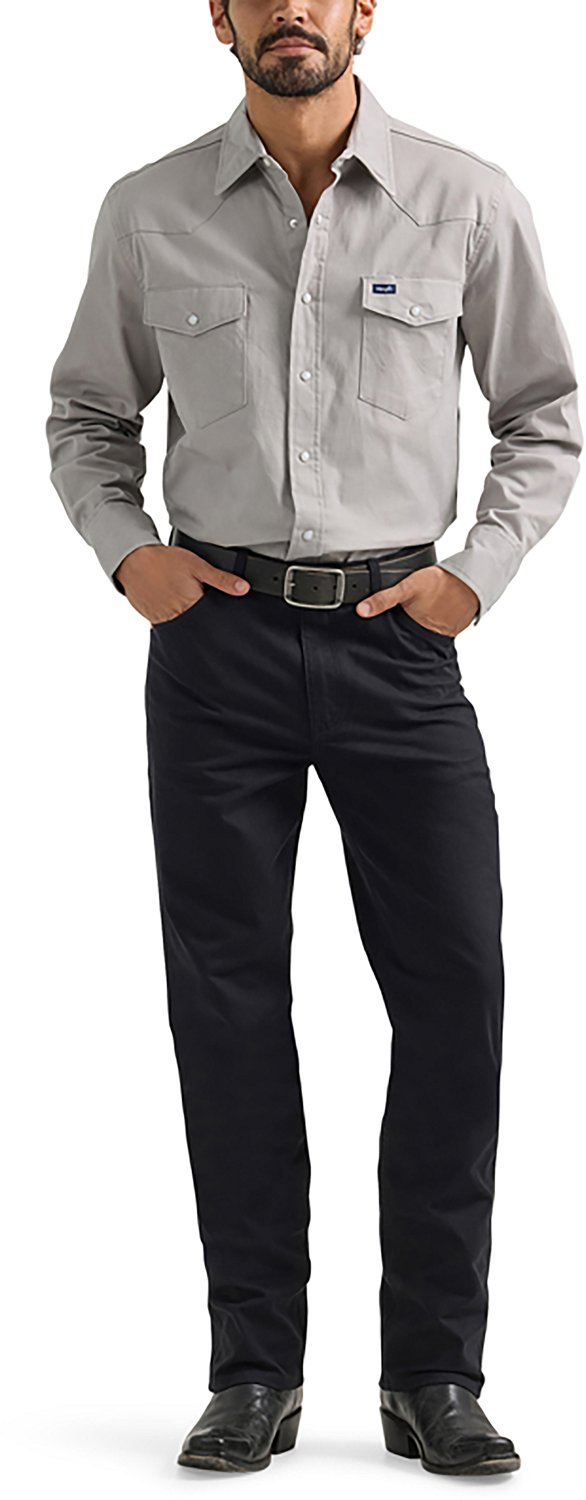 Put on the Wrangler Men's Premium Performance Tough Comfort Cowboy Cut Regular Fit Canvas Jeans and feel comfortable and confident on the job. These durable jeans are made of 98% cotton and 2% spandex with triple-stitched seams for reinforced construction, and the 5 pockets makes it easy to keep essentials with you.