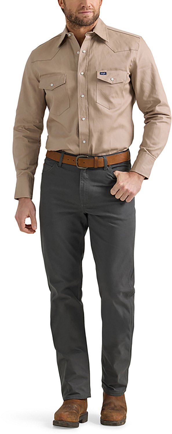 Put on the Wrangler Men's Premium Performance Tough Comfort Cowboy Cut Regular Fit Canvas Jeans and feel comfortable and confident on the job. These durable jeans are made of 98% cotton and 2% spandex with triple-stitched seams for reinforced construction, and the 5 pockets makes it easy to keep essentials with you.