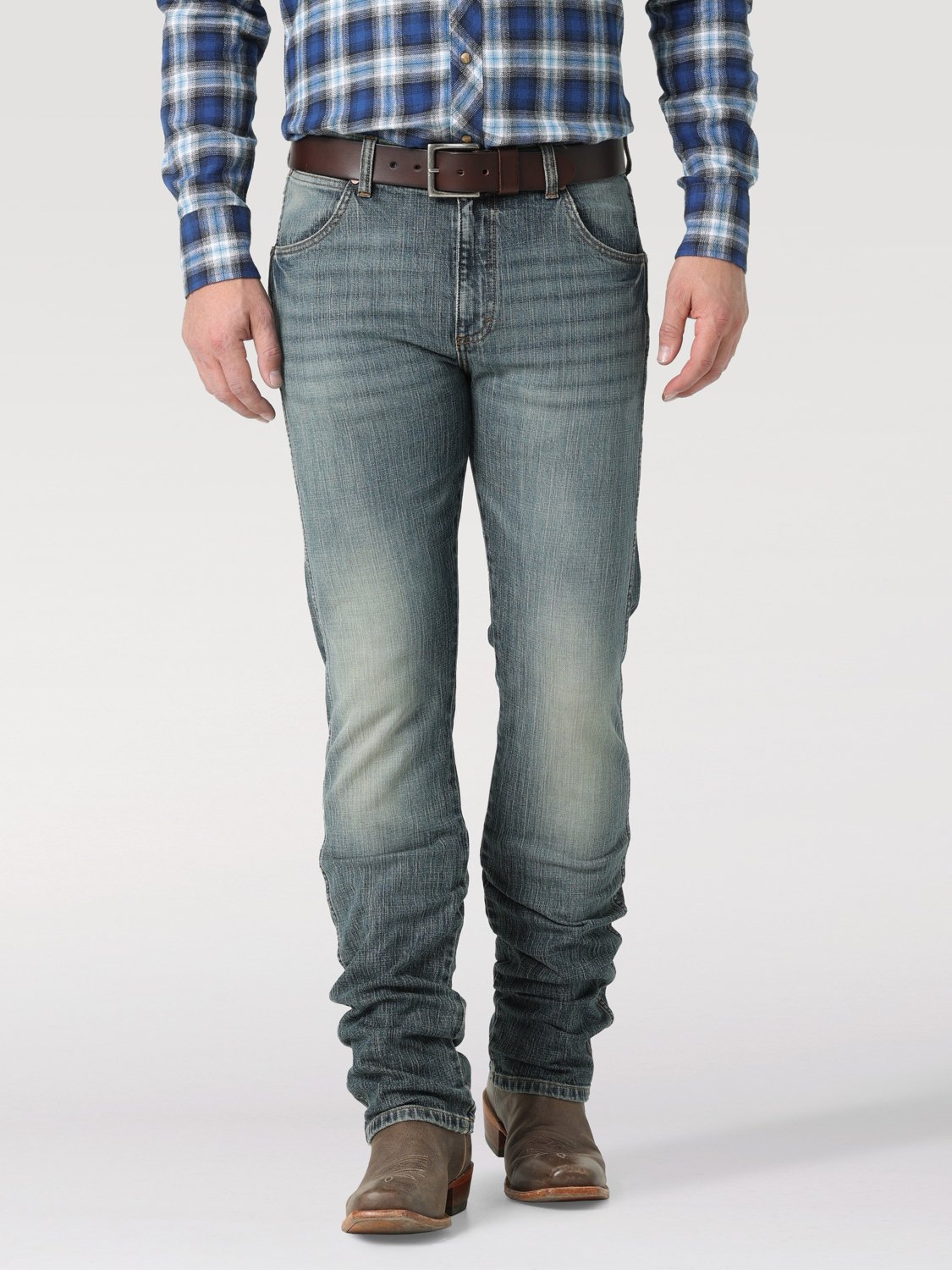 Show off your western style in the Wrangler Men's Retro Slim Straight Jeans. The 12.25-ounce stretch denim construction offers bendability and a long-lasting feel, and the slim, low rise design allows you to display your belt for added detail.