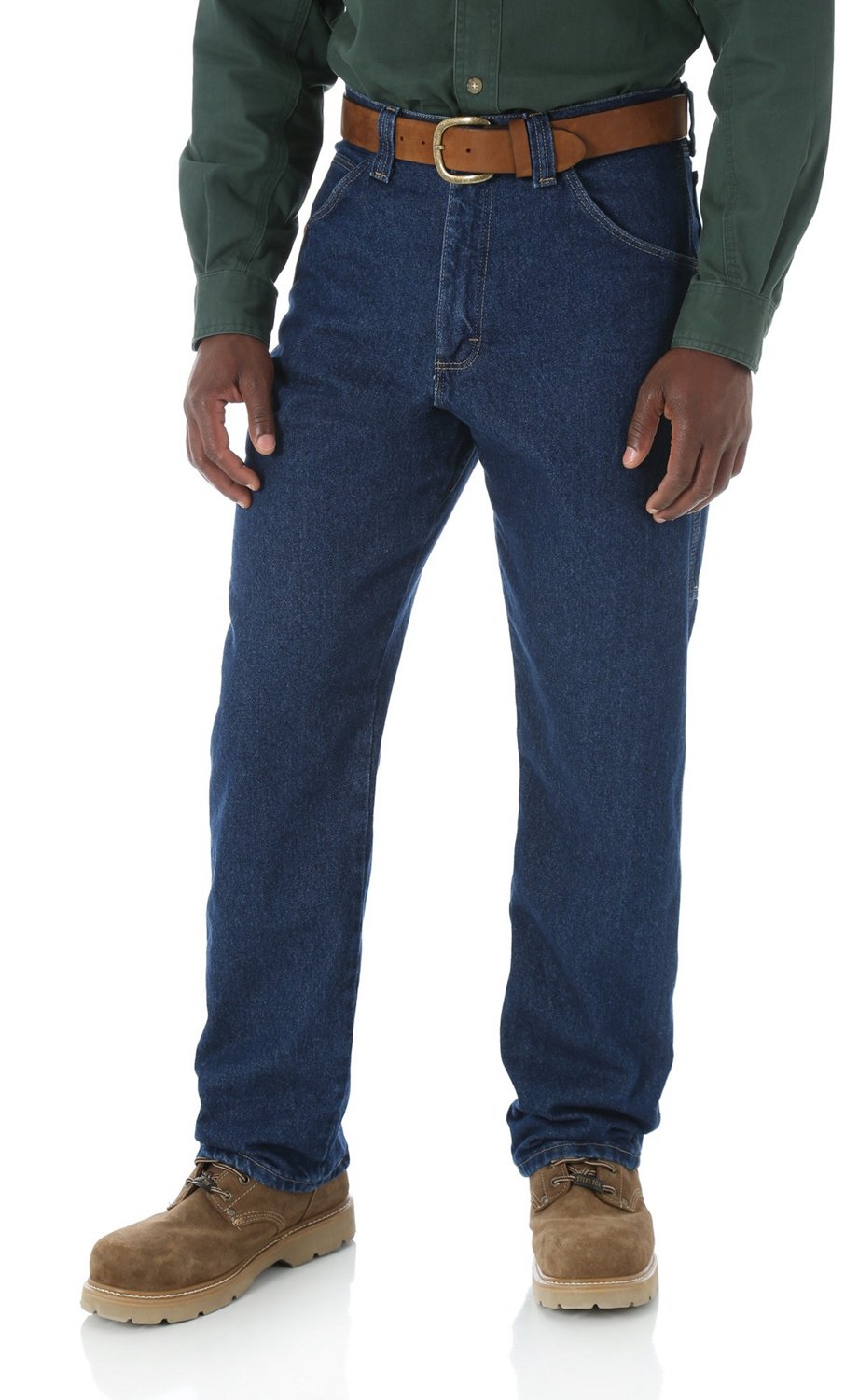 Get the job done in the Wrangler® Men's RIGGS Workwear® Carpenter Jean, which is made of durable fabric and features a handy leather tape measure reinforcement on the right front pocket. The action gusset and relaxed room2move™ fit makes it easy to maneuver while wearing the pant. Zipper fly with a button closure. Natural rise.