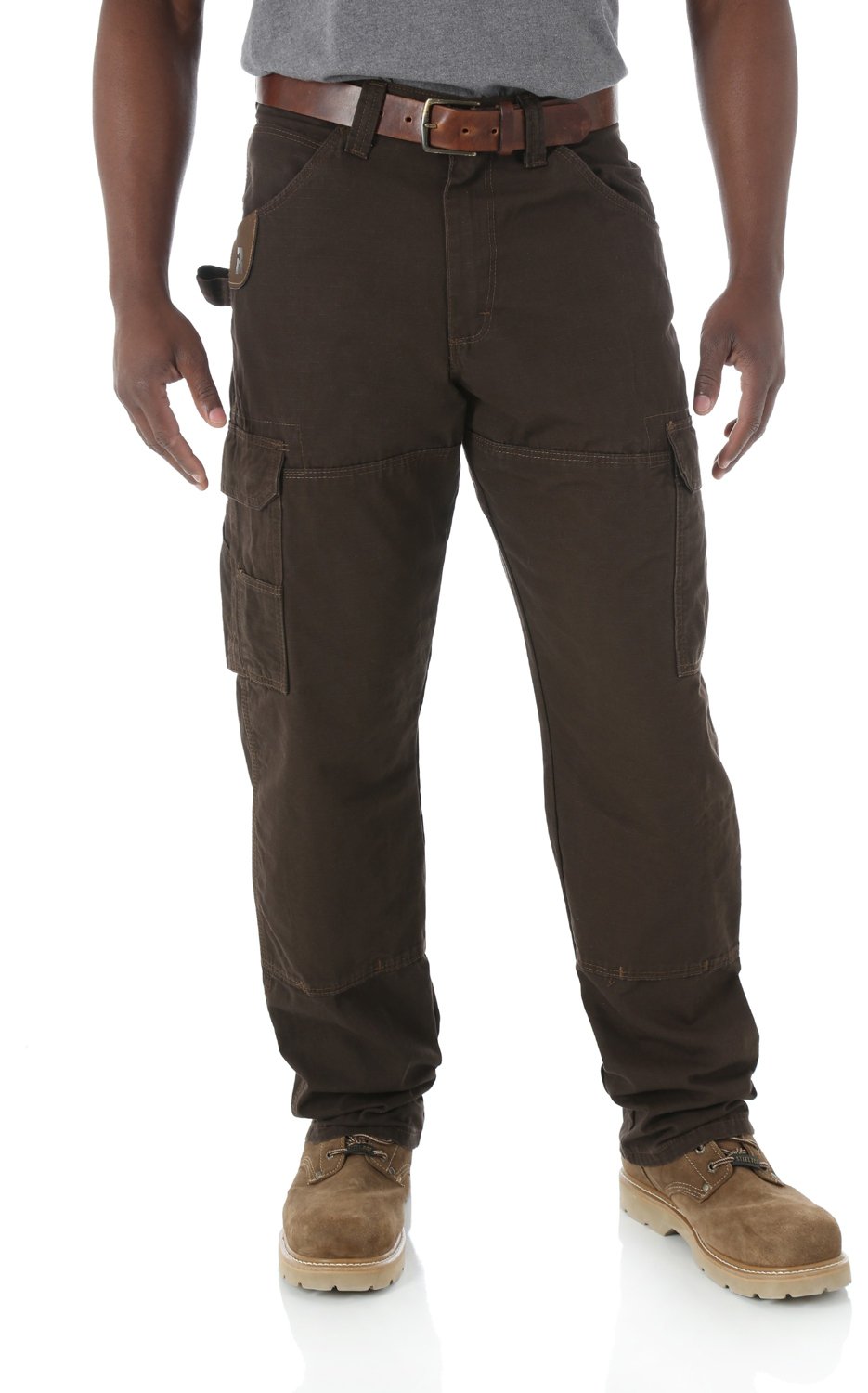 Made of 100% ripstop cotton with reinforced, bottom-vented knees, the Wrangler® Men's Riggs Workwear® Ripstop Ranger Pant offers comfortable wear and durability. The relaxed, room2move™ fit offers a great fit in the seat, thigh, knee and bottom leg opening. Cargo-style pockets on the sides with flaps and concealed snaps. Natural rise.
