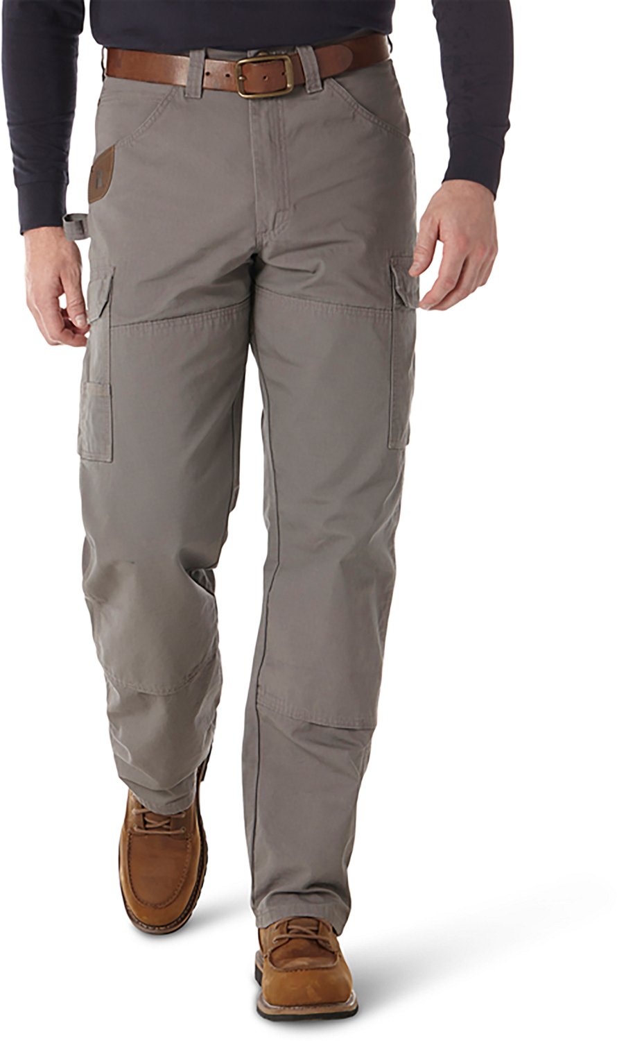Made of 100% ripstop cotton with reinforced, bottom-vented knees, the Wrangler® Men's Riggs Workwear® Ripstop Ranger Pant offers comfortable wear and durability. The relaxed, room2move™ fit offers a great fit in the seat, thigh, knee and bottom leg opening. Cargo-style pockets on the sides with flaps and concealed snaps. Natural rise.