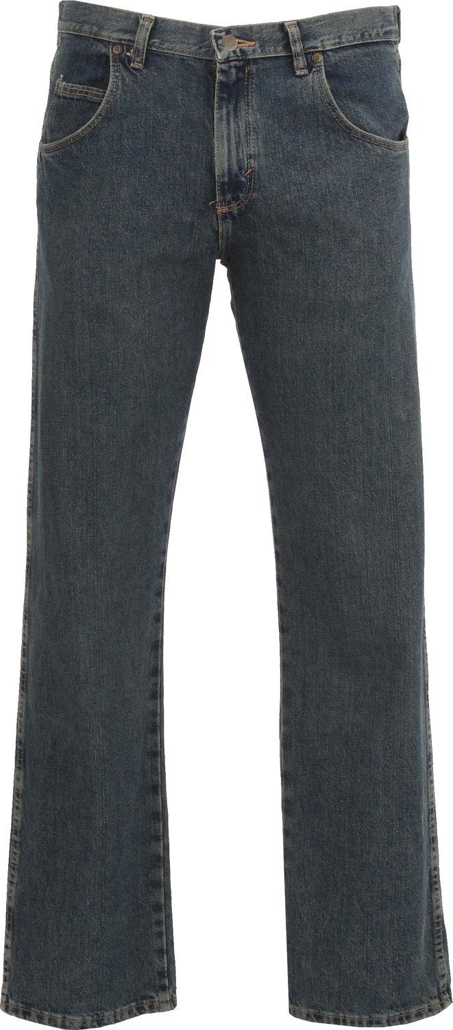 The Wrangler® Men's Rugged Wear® Relaxed Straight Fit Jean fits easily over boots and has a comfortable U-Fit crotch. This jean is relaxed through the hip and thigh and has a lower rise for additional comfort.