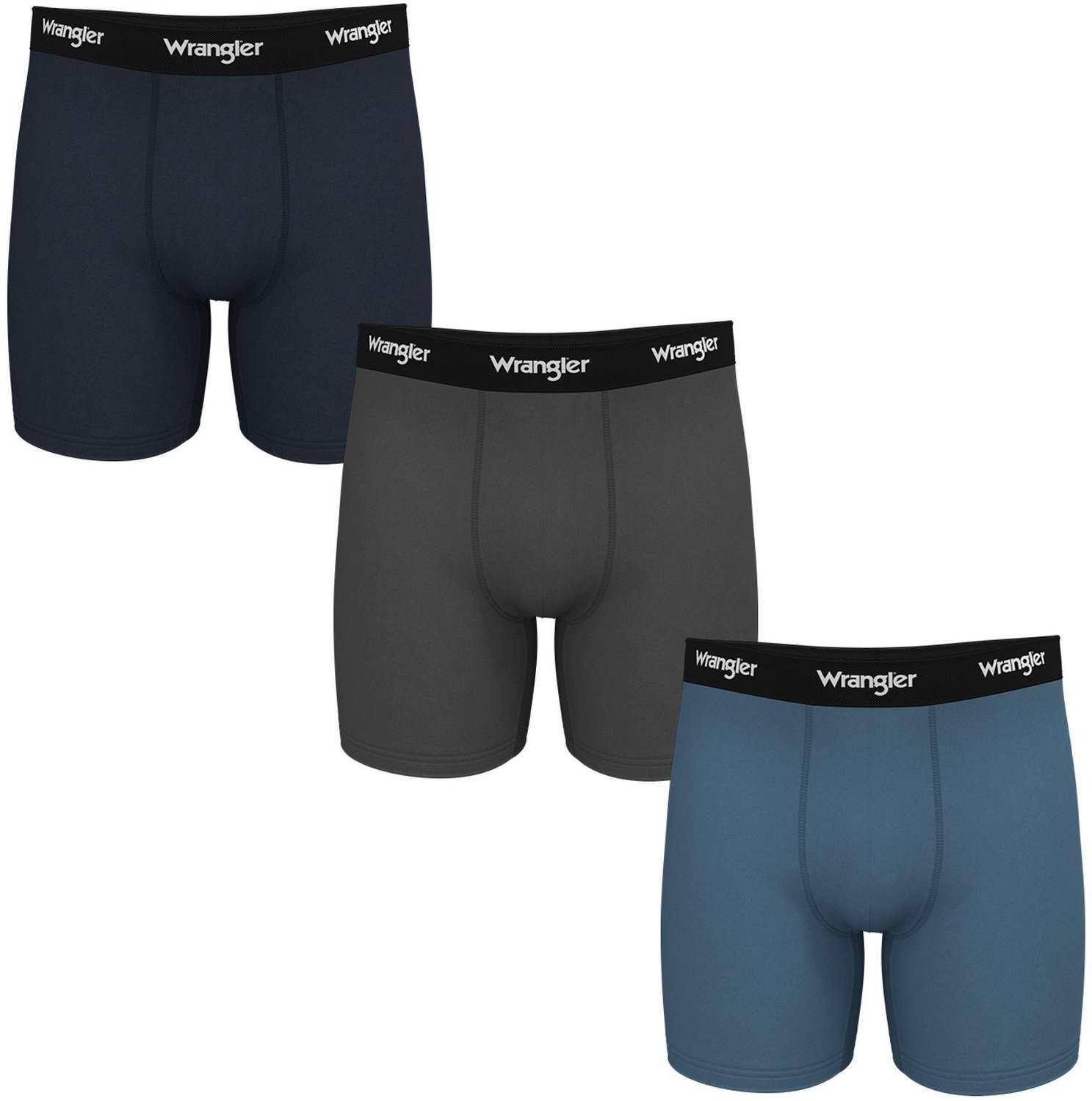 The Wrangler Men's Stretch Boxer Briefs 3-Pack are perfect for the hardworking guy. The material is stretchy, easy to move in and made with moisture-wicking technology to help minimize sweat and keep you comfortable. No-ride-up legs ensure the briefs stay put and remain comfortable all throughout your shift. Smooth Comfort Logo waistband.