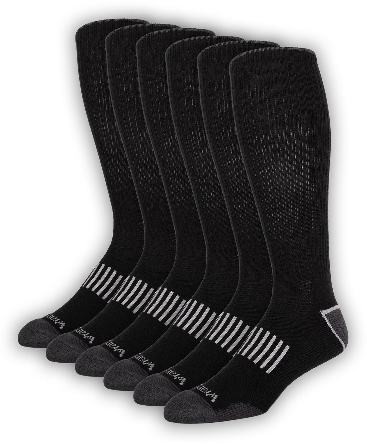 Step into the wild and dusty legacy of the West, one of grit, resilience, and style with Wrangler Men's Ryder Western Cowboy Boot Socks 6 Pack. They’re not just a piece of attire, they’re a prairie-borne experience that captures the spirit of the frontier right at your feet. These knee-high socks stay put all day for a classic Western look. Supportive cushioning keeps feet happy, while moisture-wicking materials ensure dryness. Built tough with Western flair, these socks are a must-have for any cowboy's wardrobe.