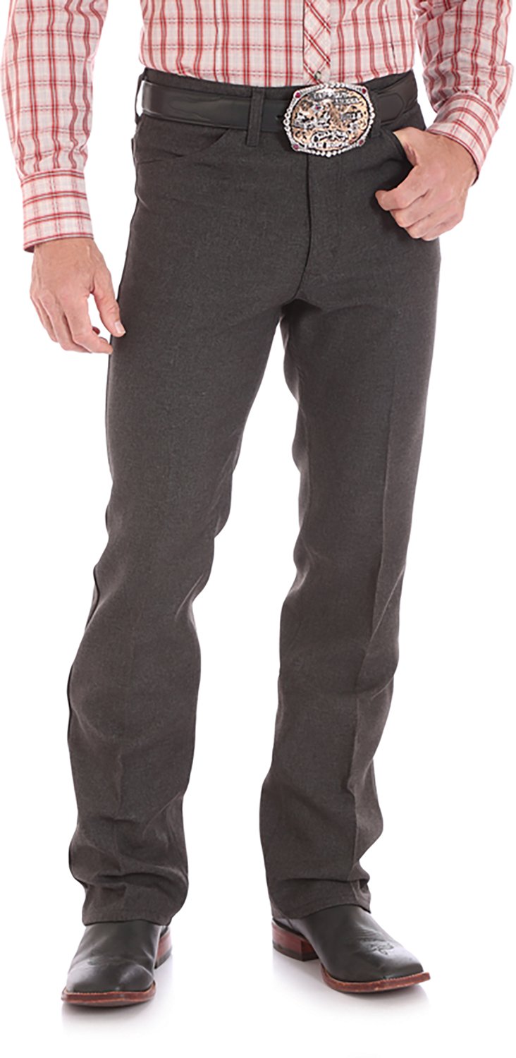 Step out feeling confident with the Wrangler Men's Wrancher Dress Jeans. The 100% polyester 8-ounce twill construction offers long-lasting dependability, and the 2 back pockets provide room to conceal small items. The zip-fly with button closure delivers a snug fit, and the soil release finish ensures your outfit stays proper.