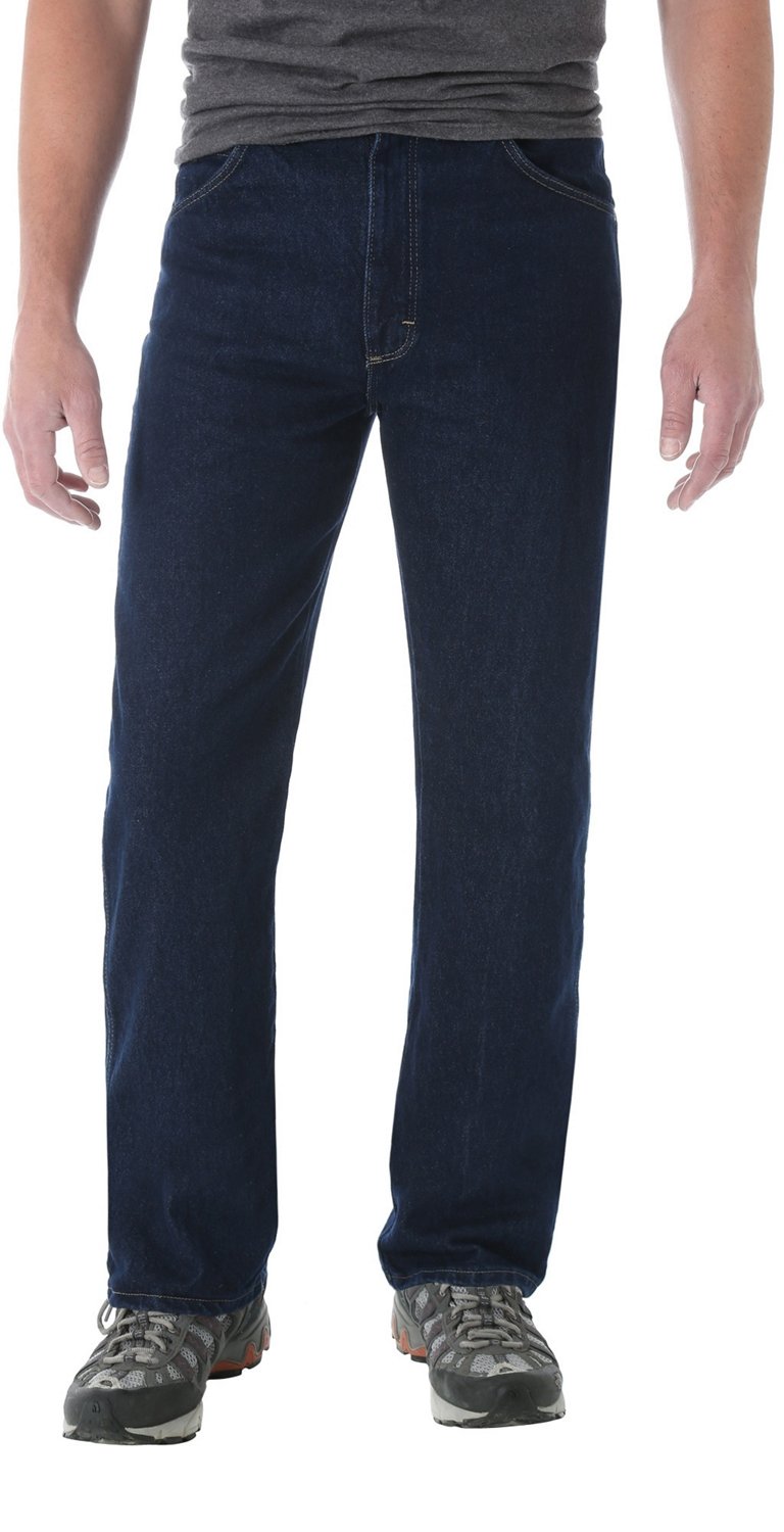 The Wrangler Rugged Wear® Men's Classic Fit Jean is constructed from durable 100% cotton denim and features a 5-pocket design with easy-entry, extra-deep front pockets and oversize hip pockets. The comfortable U-Fit crotch offers plenty of room for movement, and the legs fit easily over footwear and boots.